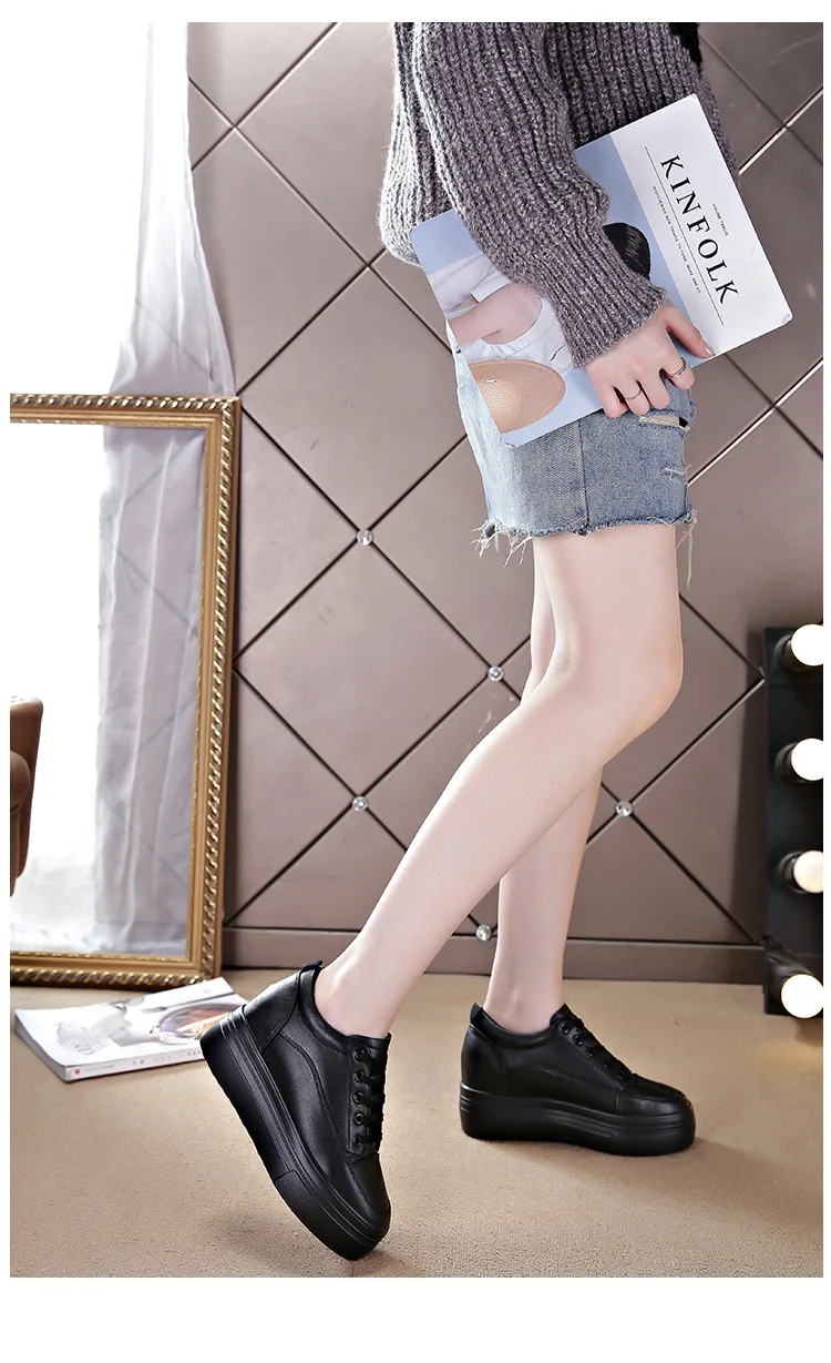حذاء نسائي من الجلد يزيد الطول 10 سنتيمتر قابل للتنفس رياضي