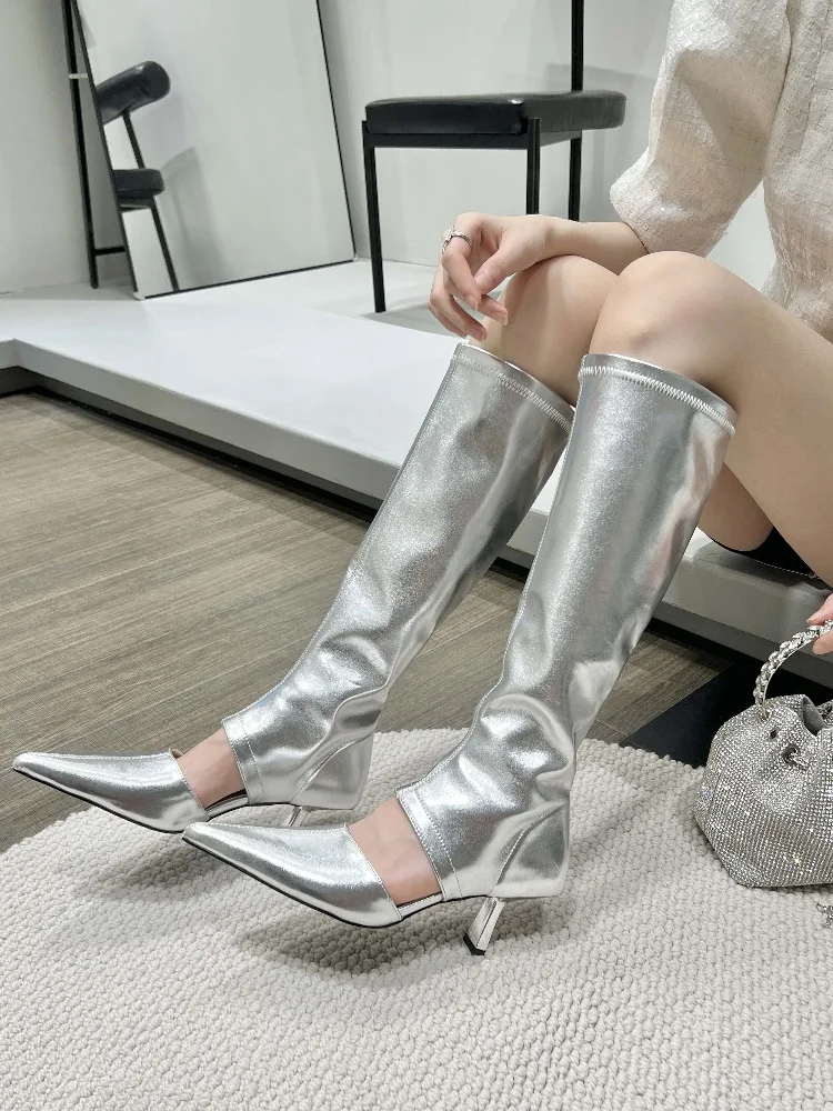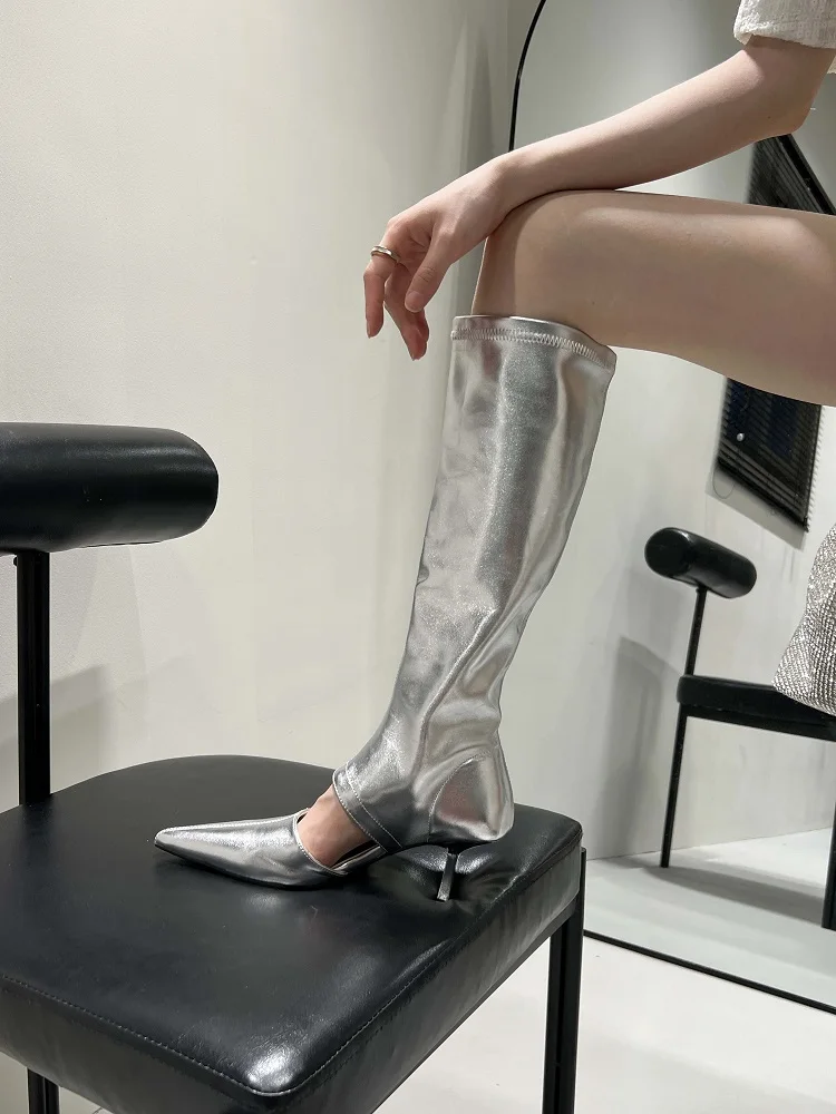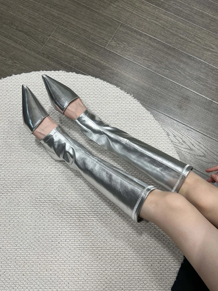 إيليكن-حذاء برقبة عالية بفتحة فوق الركبة للنساء ، حذاء بإصبع مدبب ، كعب منخفض رفيع ، طراز الشارع ، مصمم ، توي