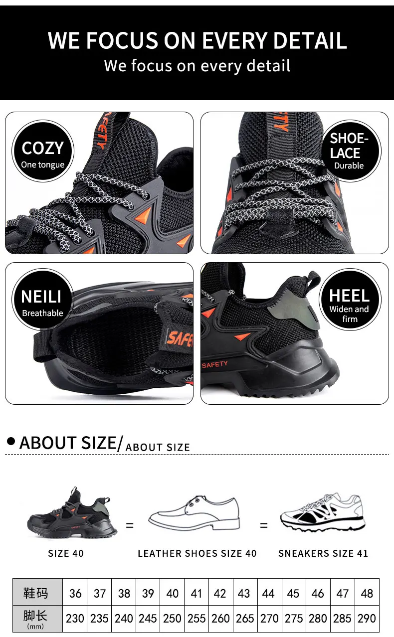 الرجال حذاء امن للعمل الصلب تو أحذية البناء أحذية رياضية تنفس خفيفة الوزن غير قابل للتدمير صناعة الأحذية الذكور