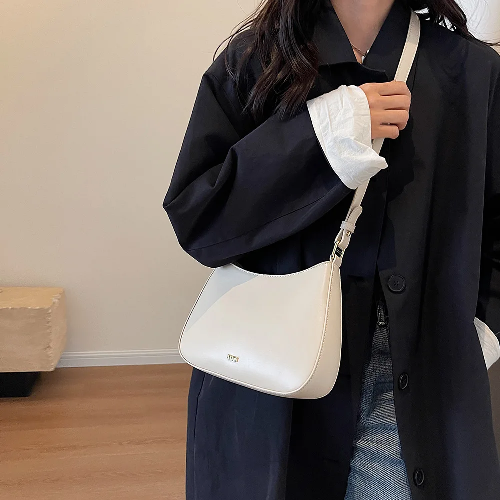 الرجعية حقيبة جلدية تحت الإبط للنساء ، حقيبة يد سعة كبيرة ، حقيبة بسيطة ، حقيبة الكتف خمر ، بلون ، مصمم فاخر ، السيدات