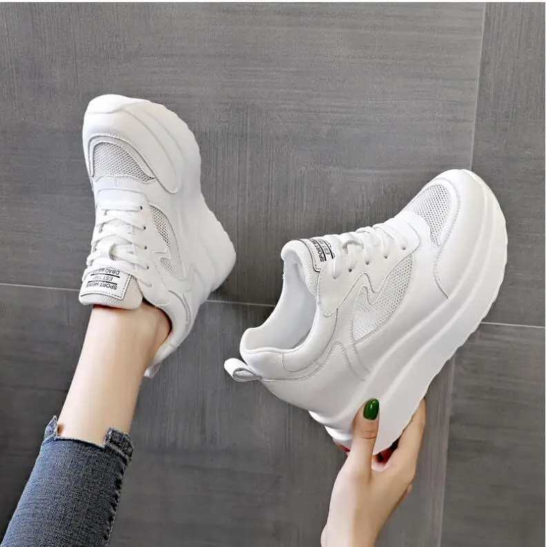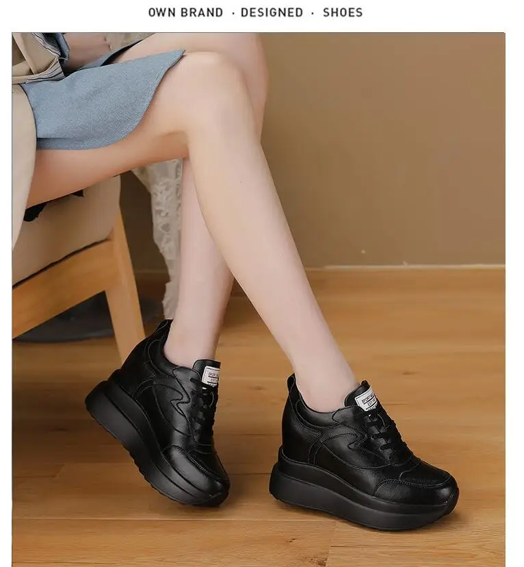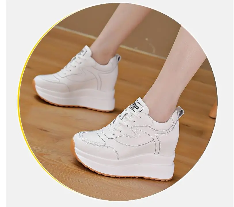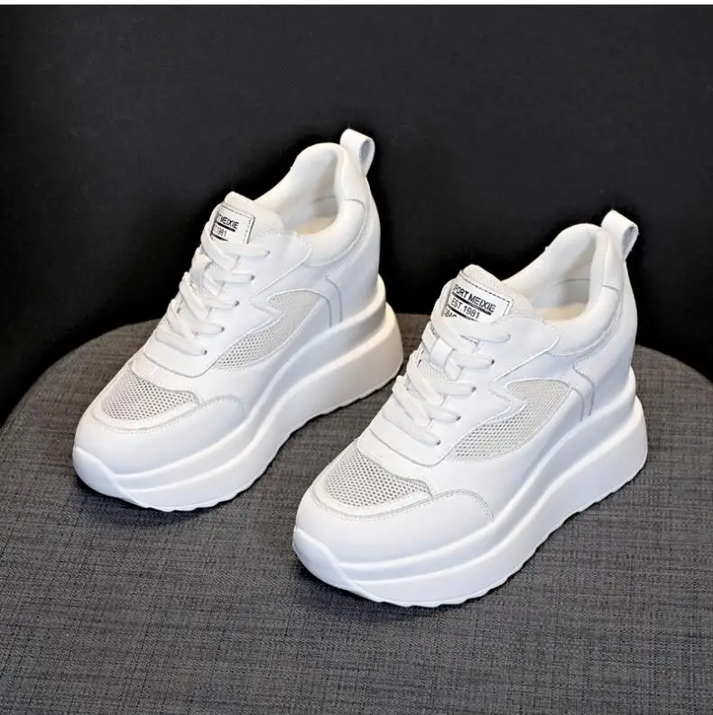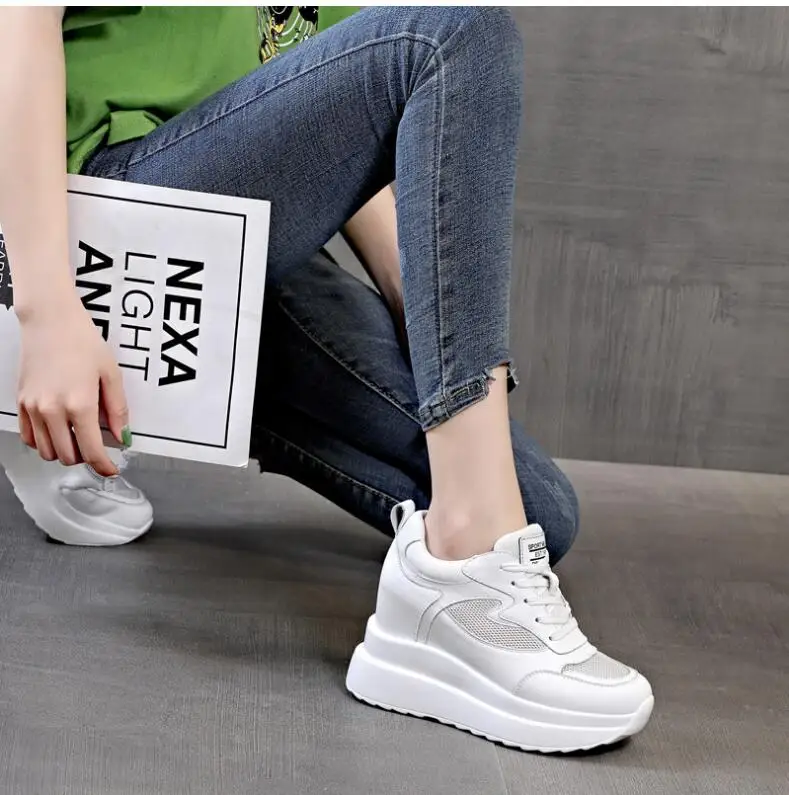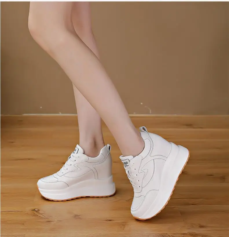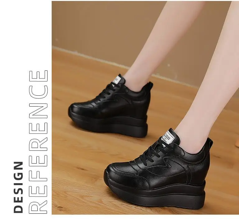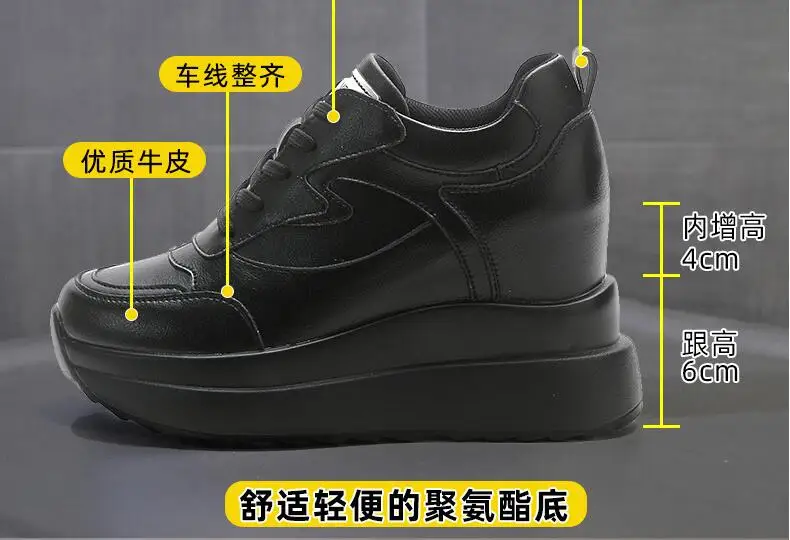 حذاء نسائي من الجلد يزيد الطول 10 سنتيمتر قابل للتنفس رياضي