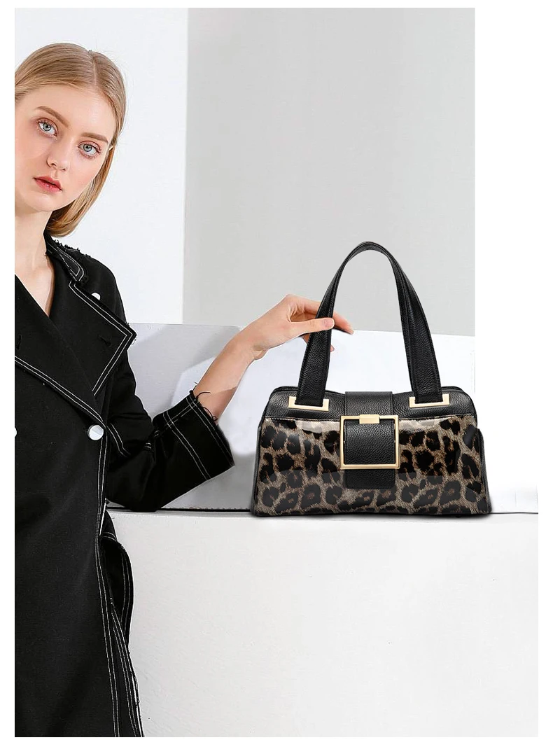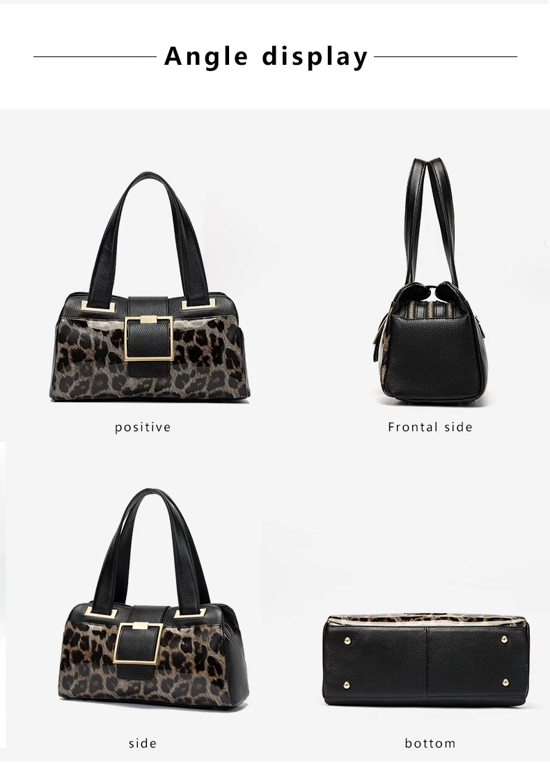جلد طبيعي المرأة حقيبة 2023 موضة جديدة ليوبارد نمط حقيبة الكتف حقيبة جلد البقر حقيبة المرأة