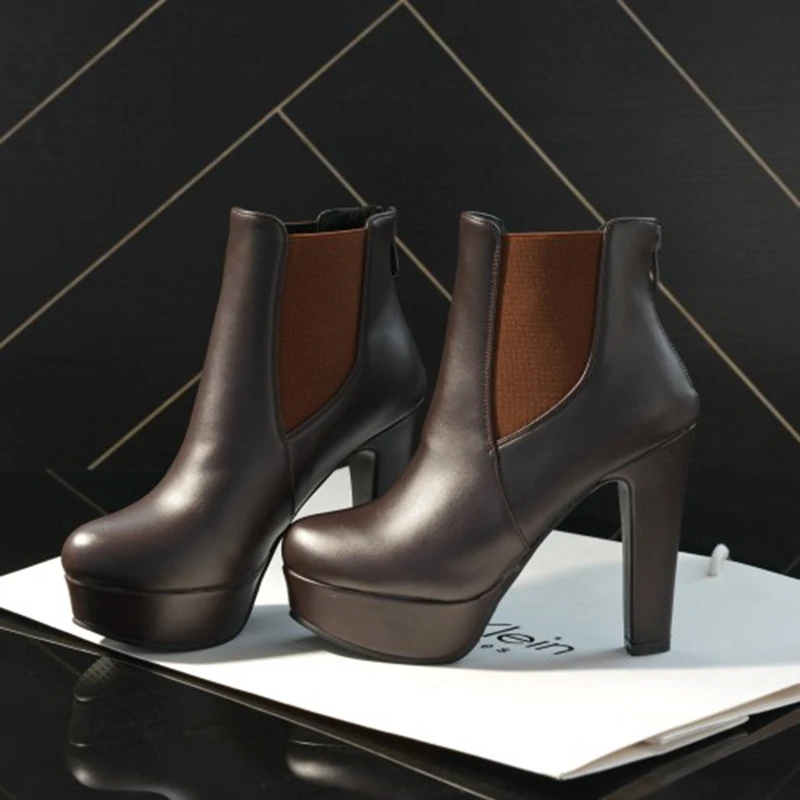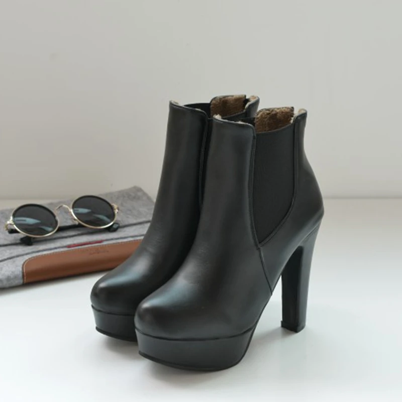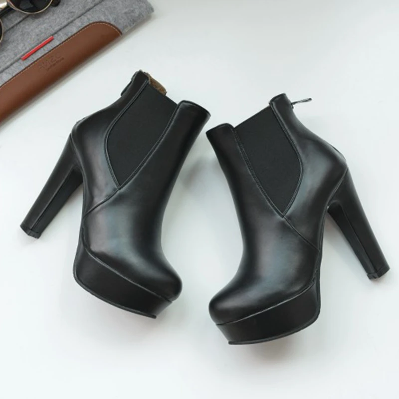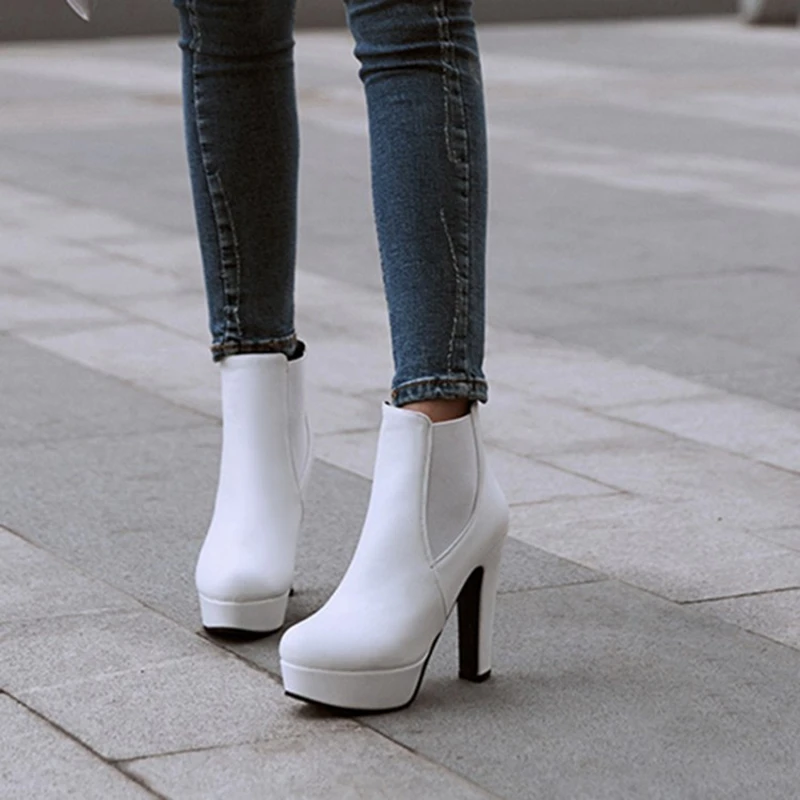 حذاء بوت كاحل مع كعب عالي للنساء ، حذاء بكعب سميك ، أسود وأبيض ، سحاب للسيدات ، 12 * ، مقاس كبير 34-50 ، F1494