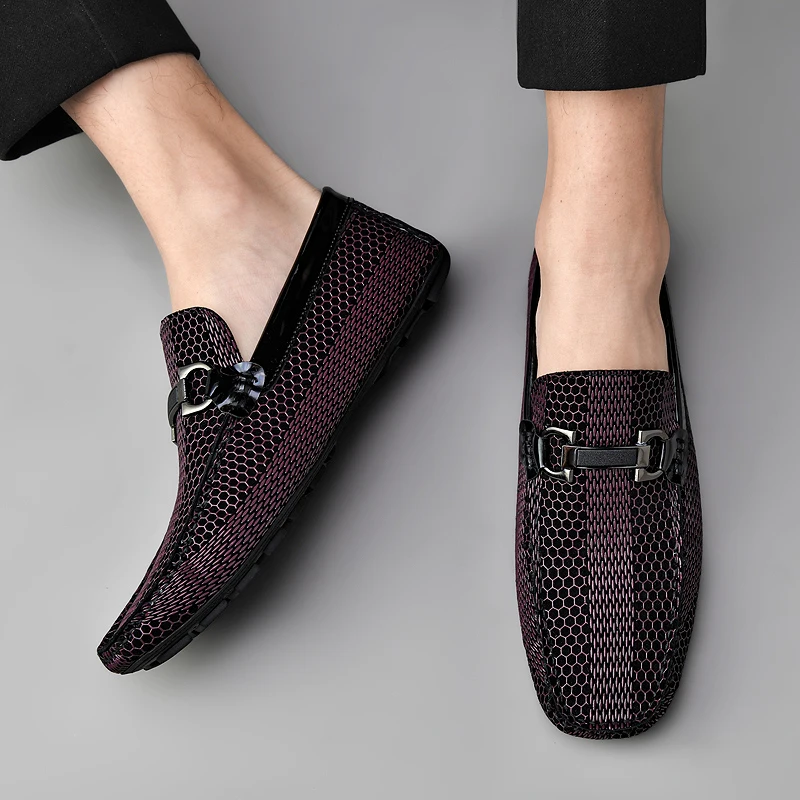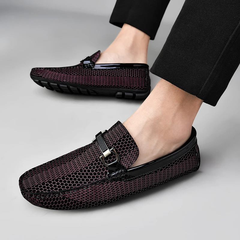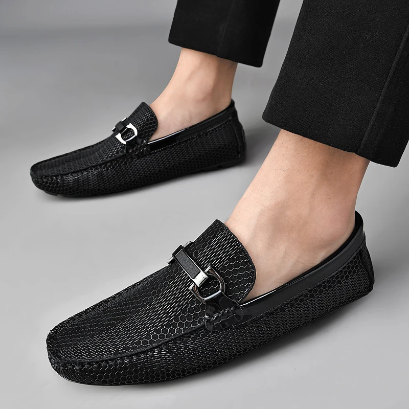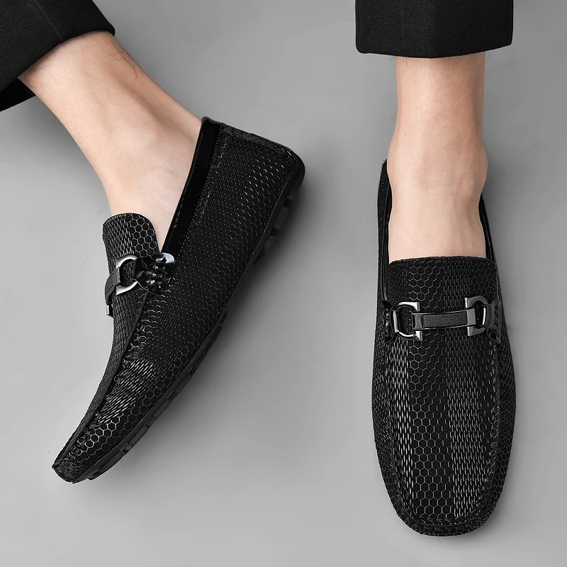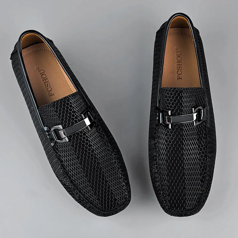 حذاء رجالي فاخر من الجلد الأصلي حذاء بدون كعب للقيادة مصنوع من الجلد الطبيعي حذاء رجالي غير رسمي سهل الارتداء للزفاف