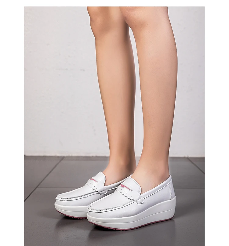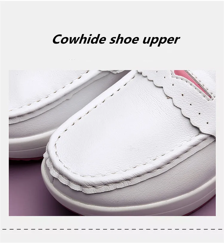 أحذية نسائية بنعل سفيني أحذية غير رسمية بدون كعب أحذية عمل ممرضة ناعمة مريحة مريحة مانعة للإنزلاق أحذية تمريض من الجلد الأبيض