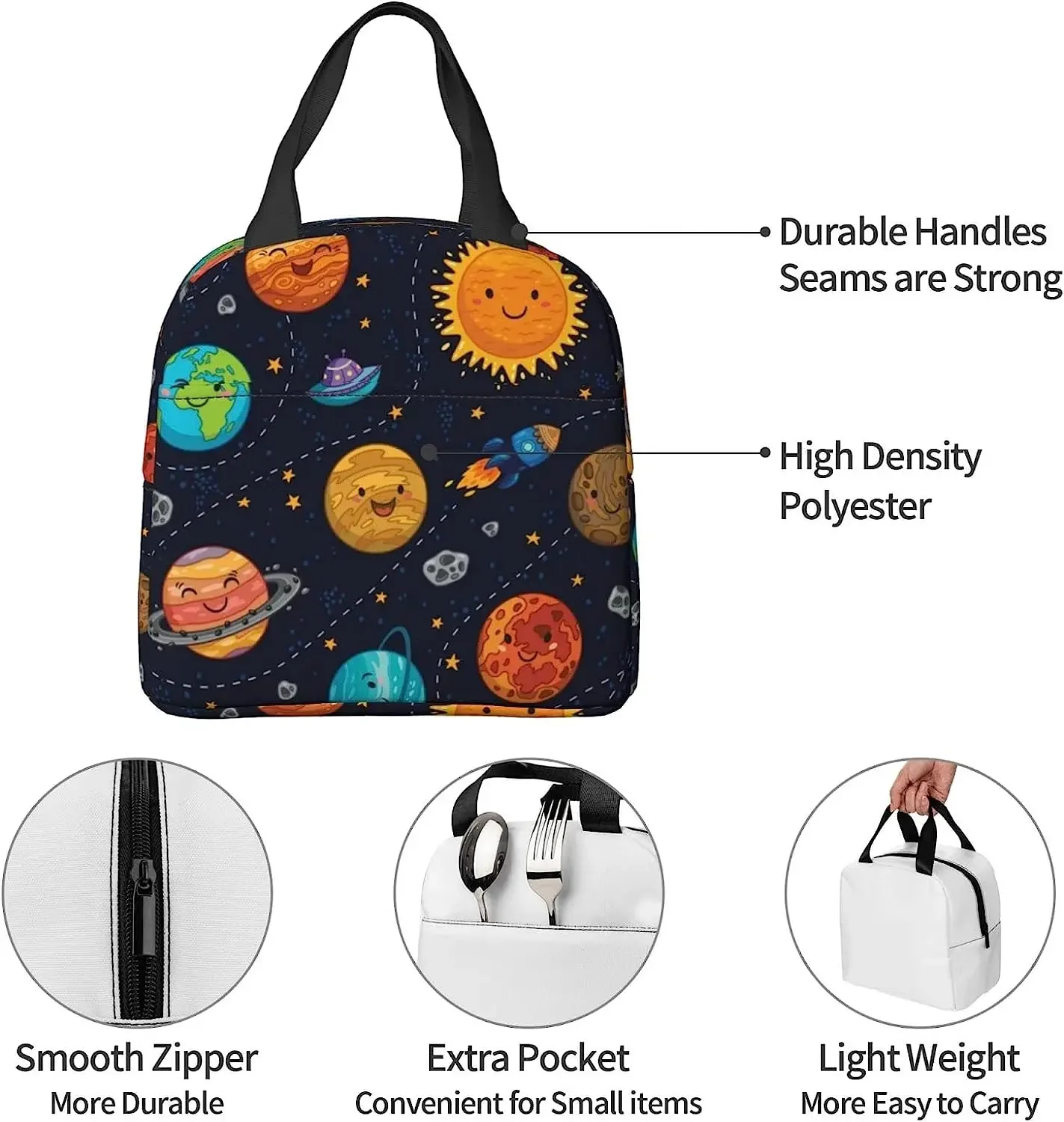 حقيبة الغداء المعزولة مع نظام الطاقة الشمسية للأطفال ، حقيبة برودة ، الفضاء ، الكوكب ، الكون ، المجرة ، المدرسة ، السفر ، الرحلات ، الأولاد ، البنات