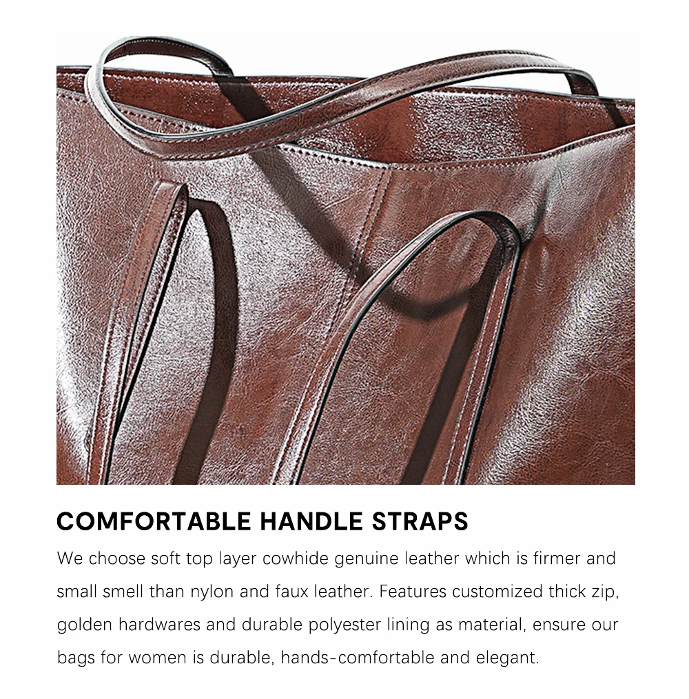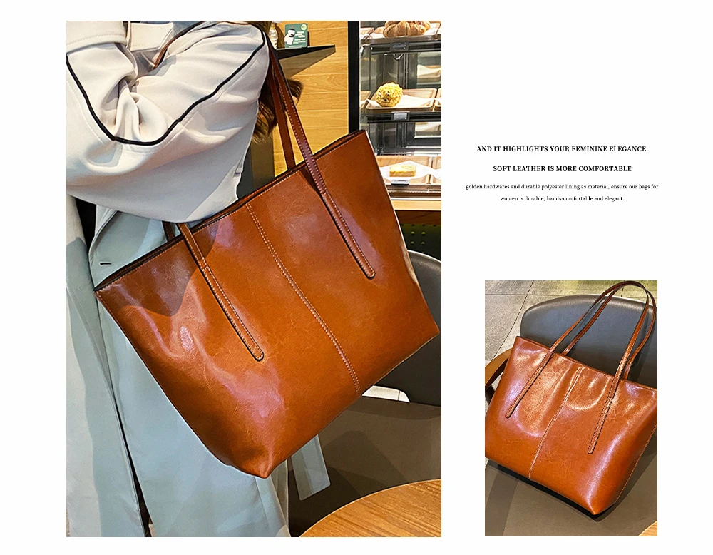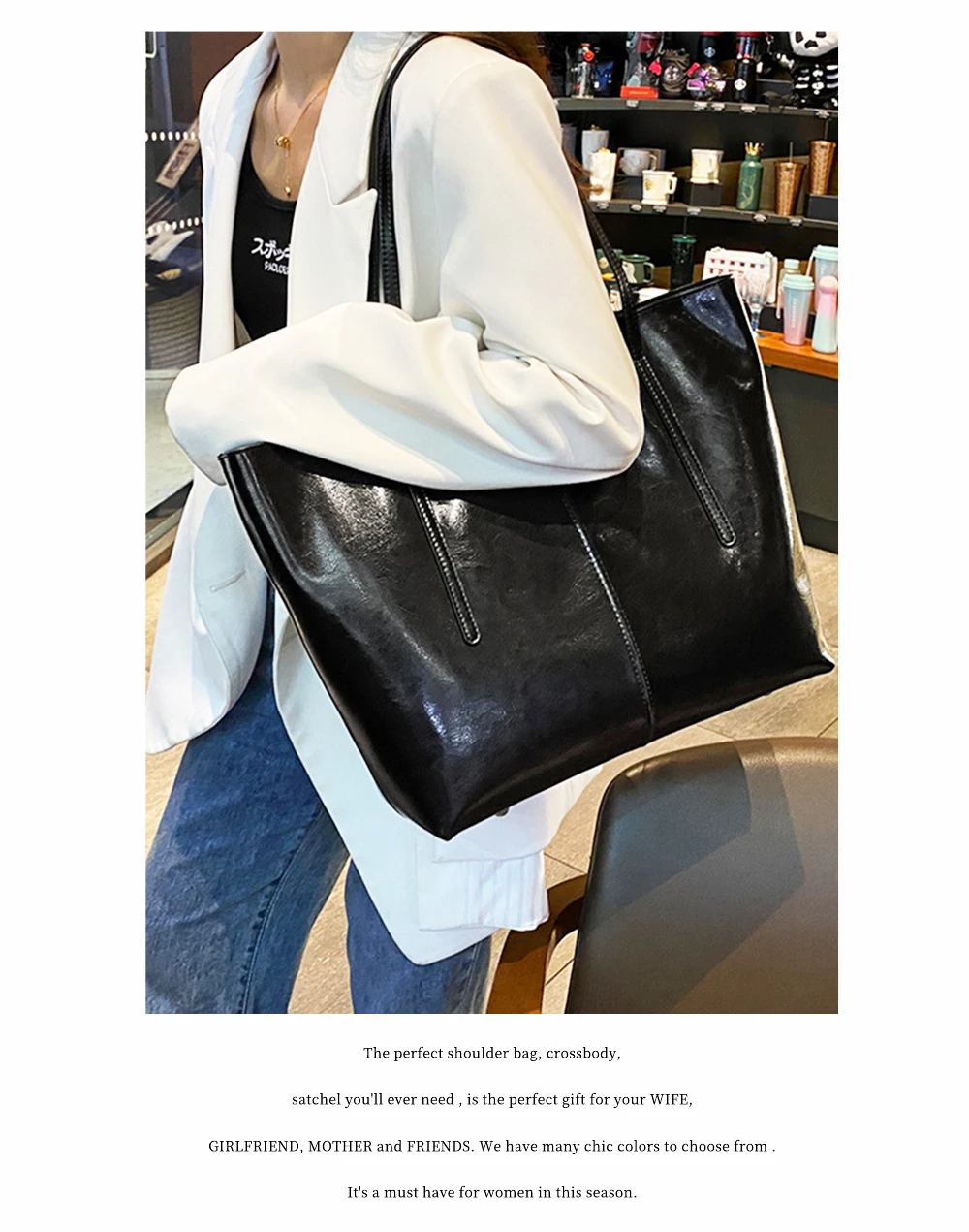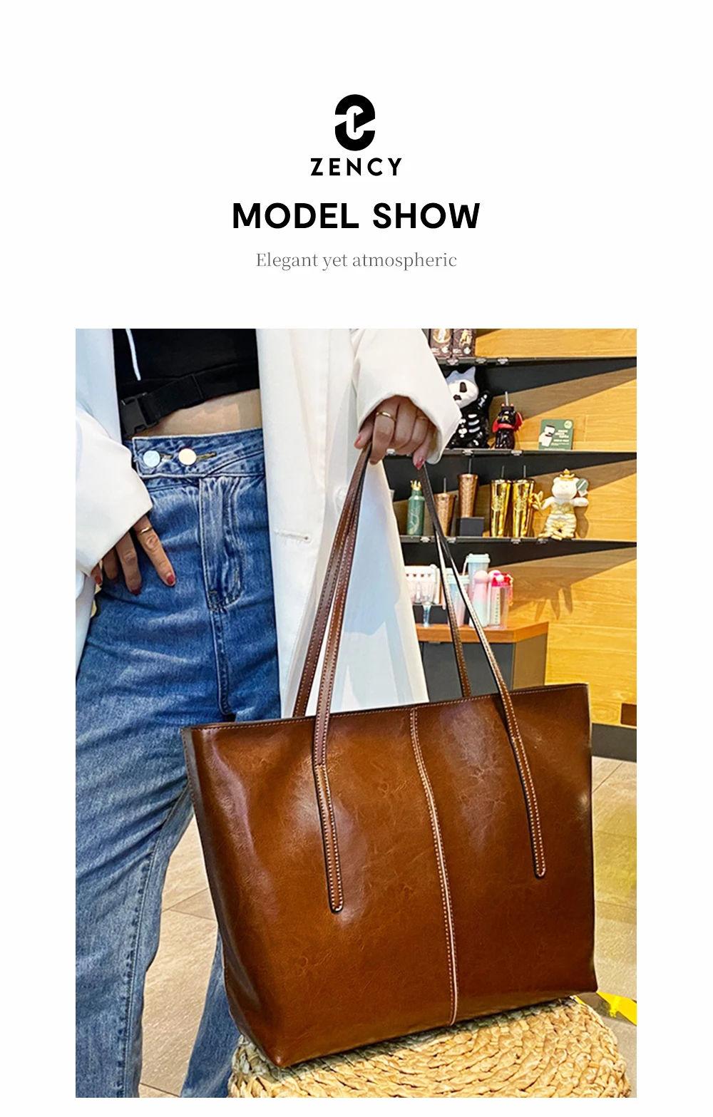حقيبة سوداء كبيرة للنساء بسعة ، جلد أصلي ، محفظة كتف للسيدات ، حقيبة يد قهوة ، حقائب تسوق ، جديدة ، Zency