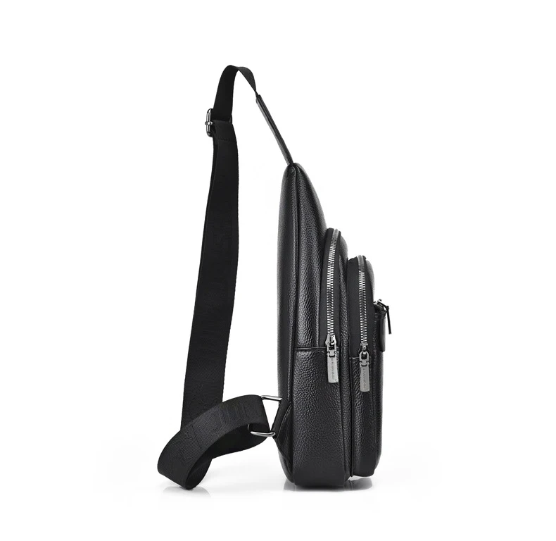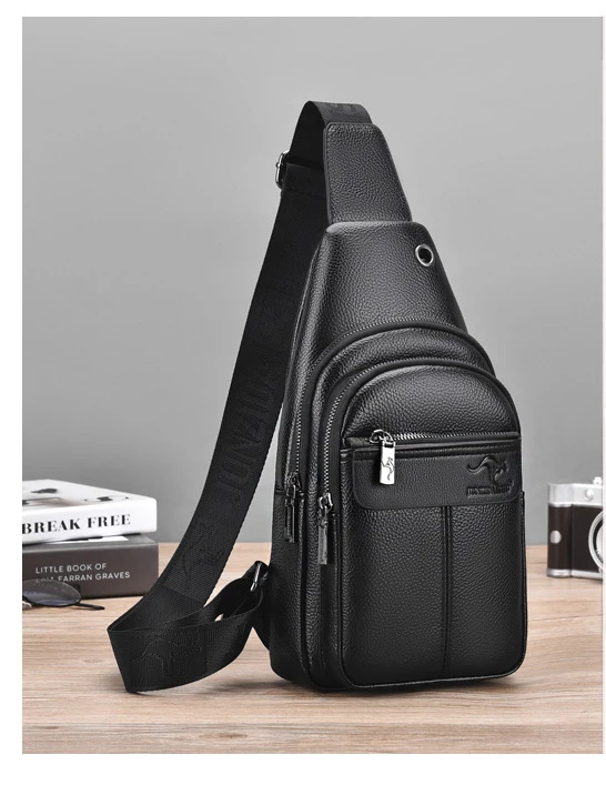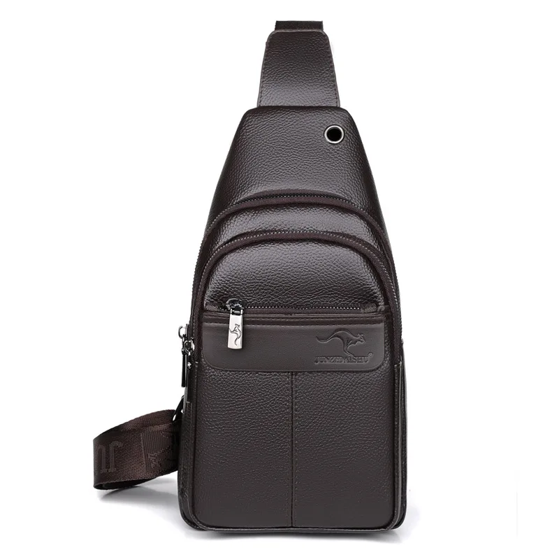 حقيبة صدر من الجلد الصناعي للرجال ، حقيبة كروس بودي للصبي ، حقيبة بحزام للسفر ، حقيبة ساعي البريد ، أسود وبني ، علامة تجارية فاخرة