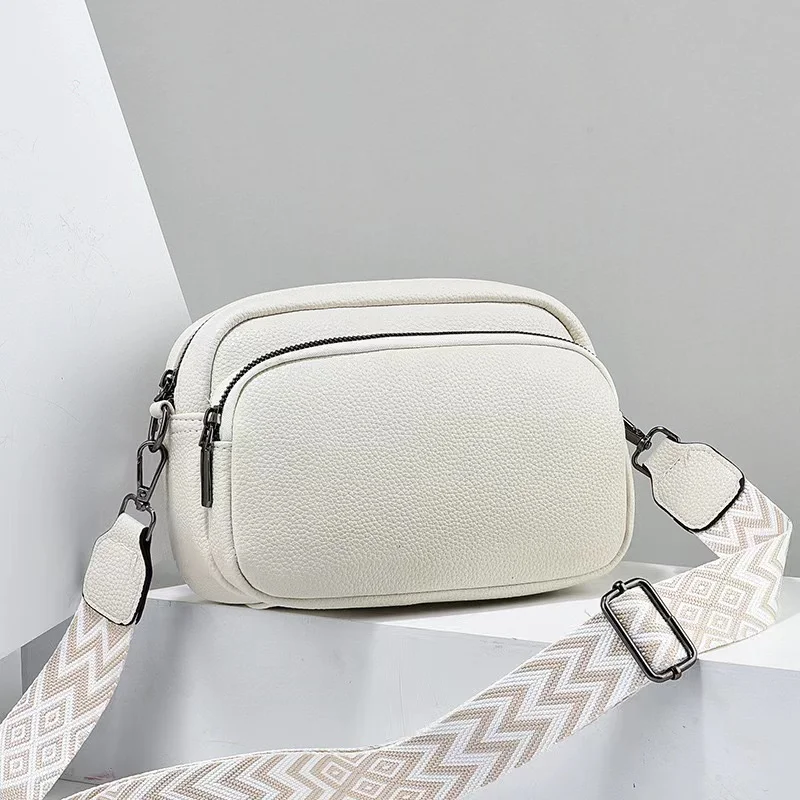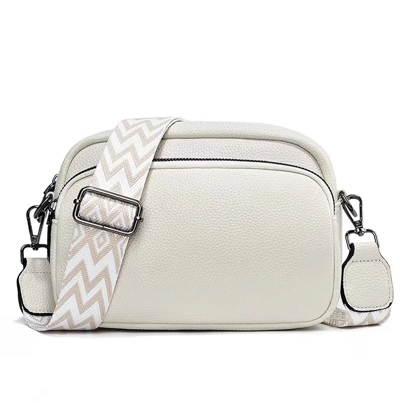 حقيبة صغيرة مربعة من الجلد بنمط ليتشي للنساء ، حزام كتف واحد متعدد الاستخدامات ، موضة جديدة ، حزام كتف عريض