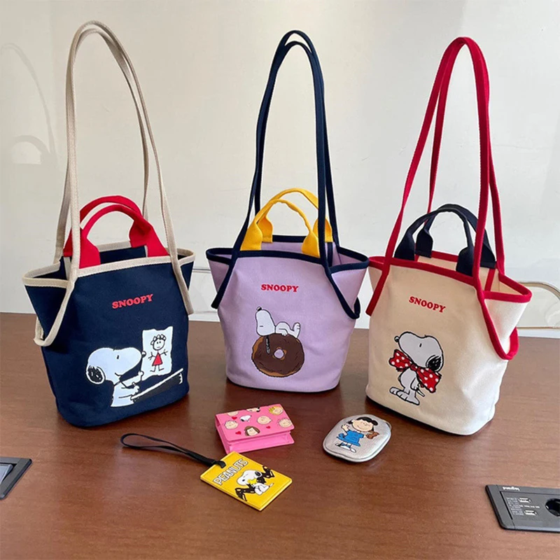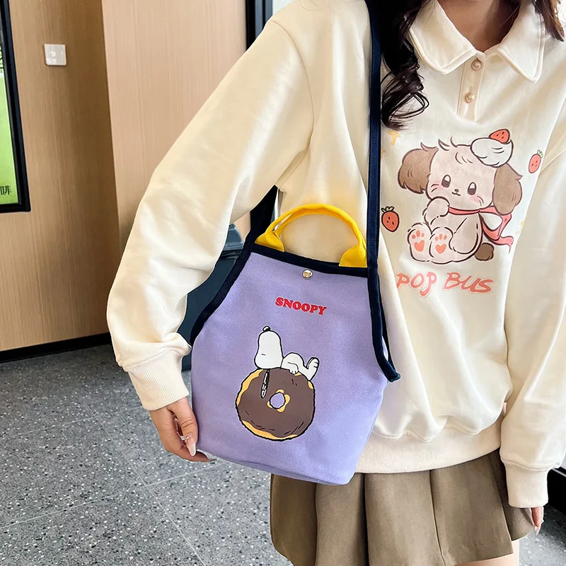 حقيبة كتف قماشية من سلسلة Miniso-Disney ، حقيبة يد بسعة كبيرة ، حقيبة دلو متقاطعة مع الجسم مطبوعة ، حقيبة ترفيه