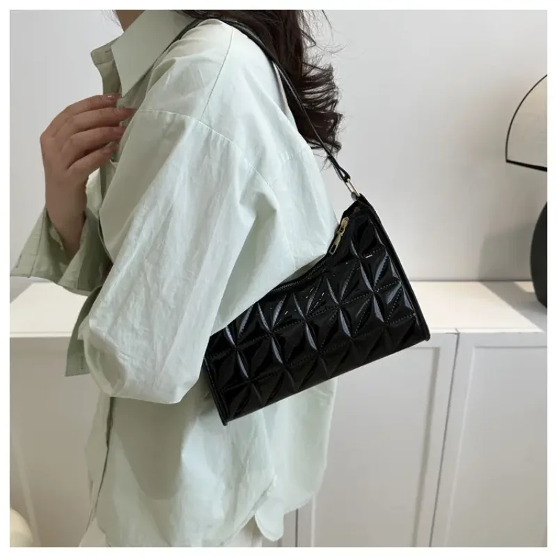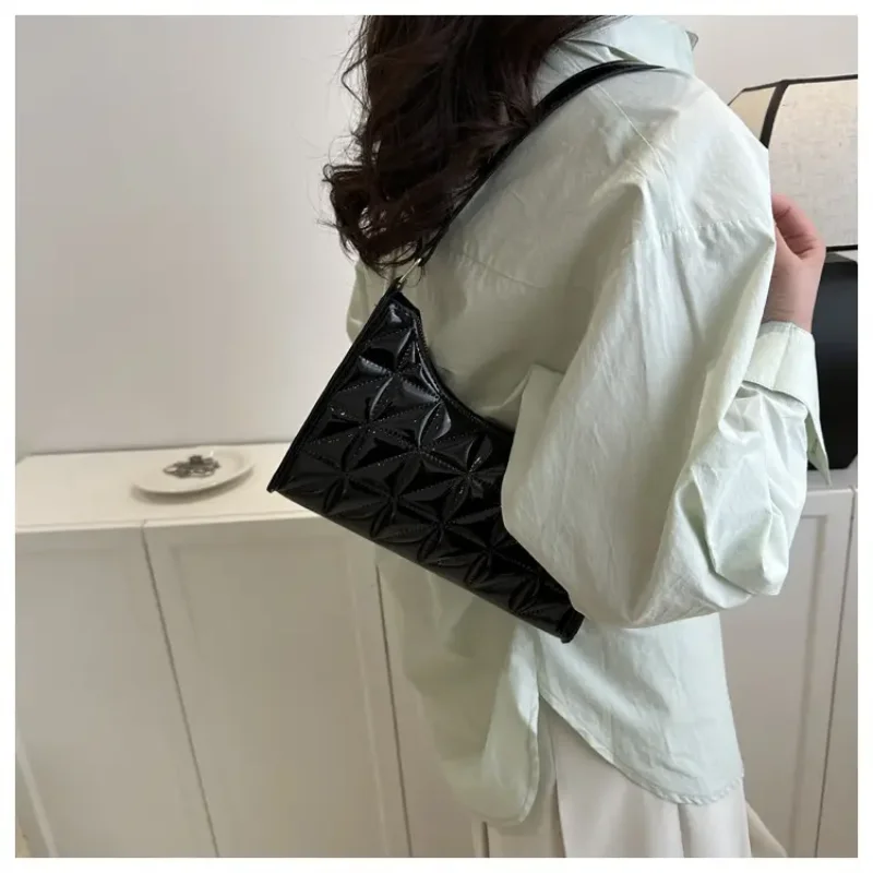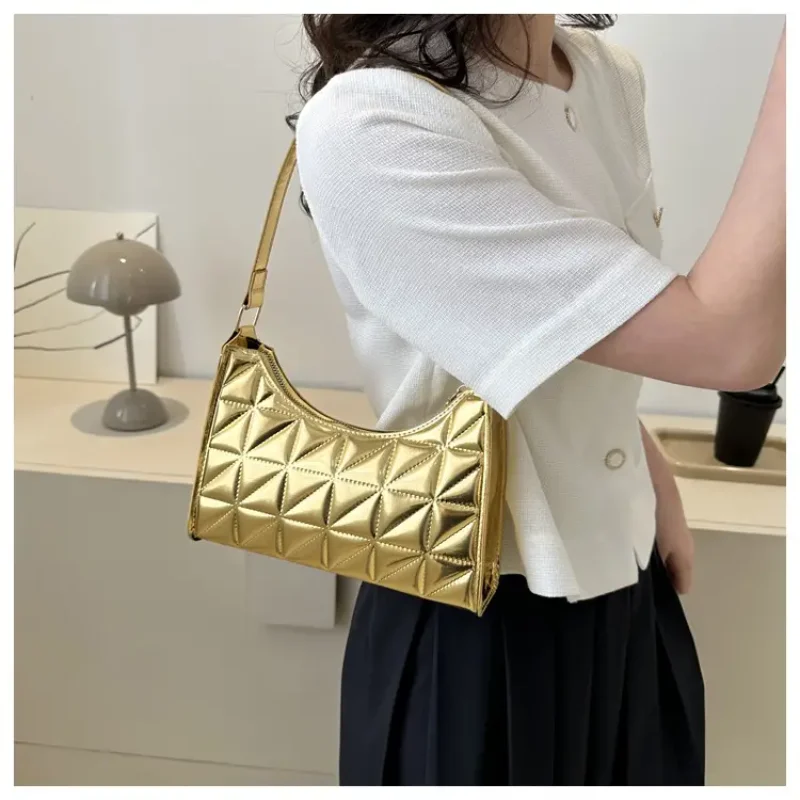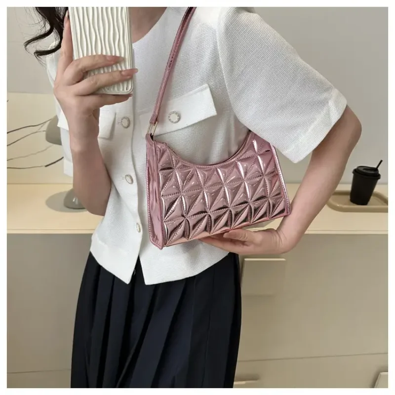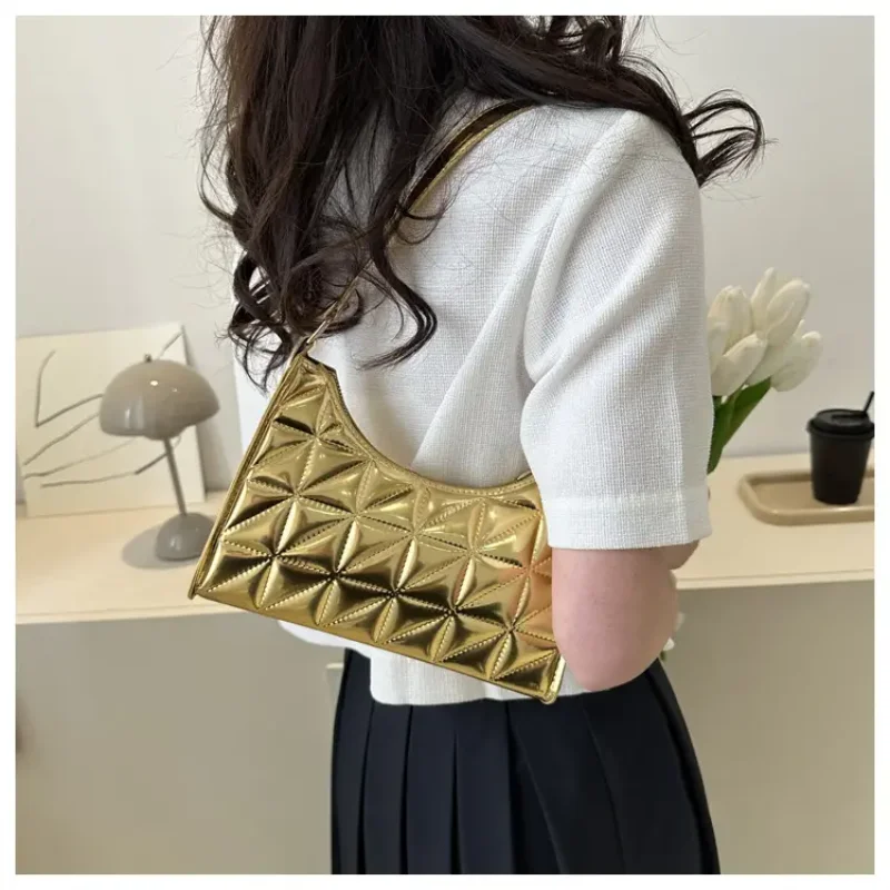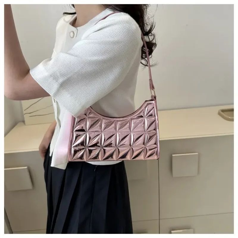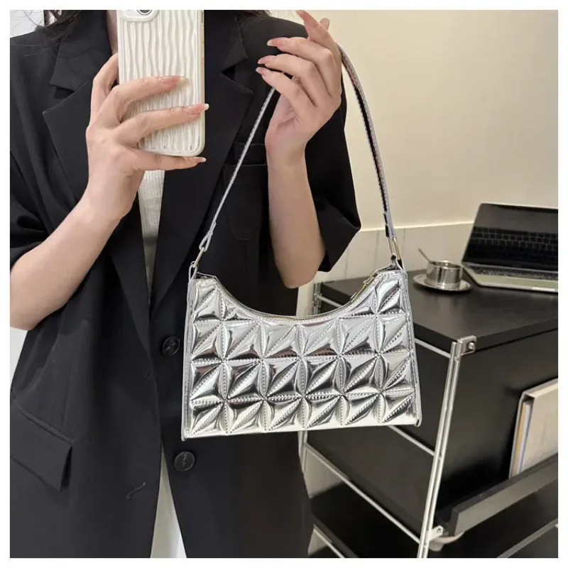 حقيبة كتف مبطنة لامعة للنساء ، محفظة تحت الإبط بلون معدني ، حقيبة يد أنيقة