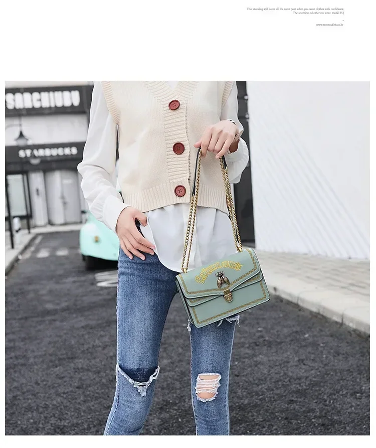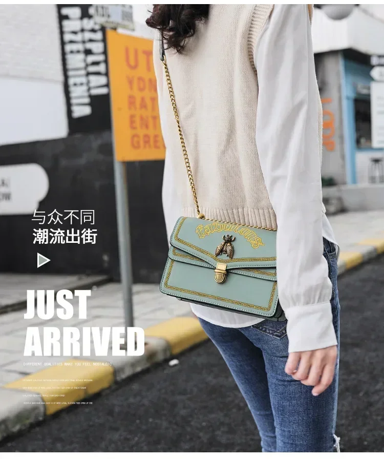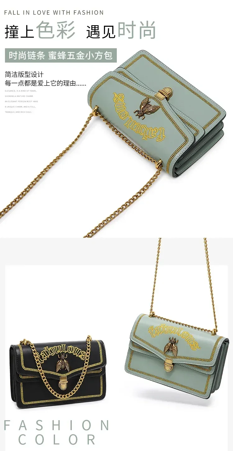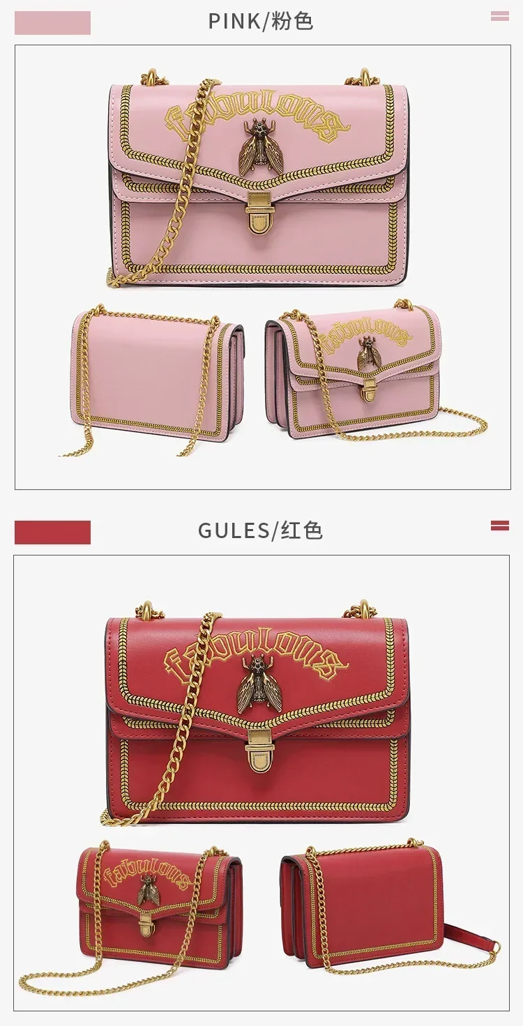 حقيبة كروس بودي حمراء للنساء ، حقيبة كتف بسلسلة ، متعددة الاستخدامات ، نحلة صغيرة ، الخريف والشتاء