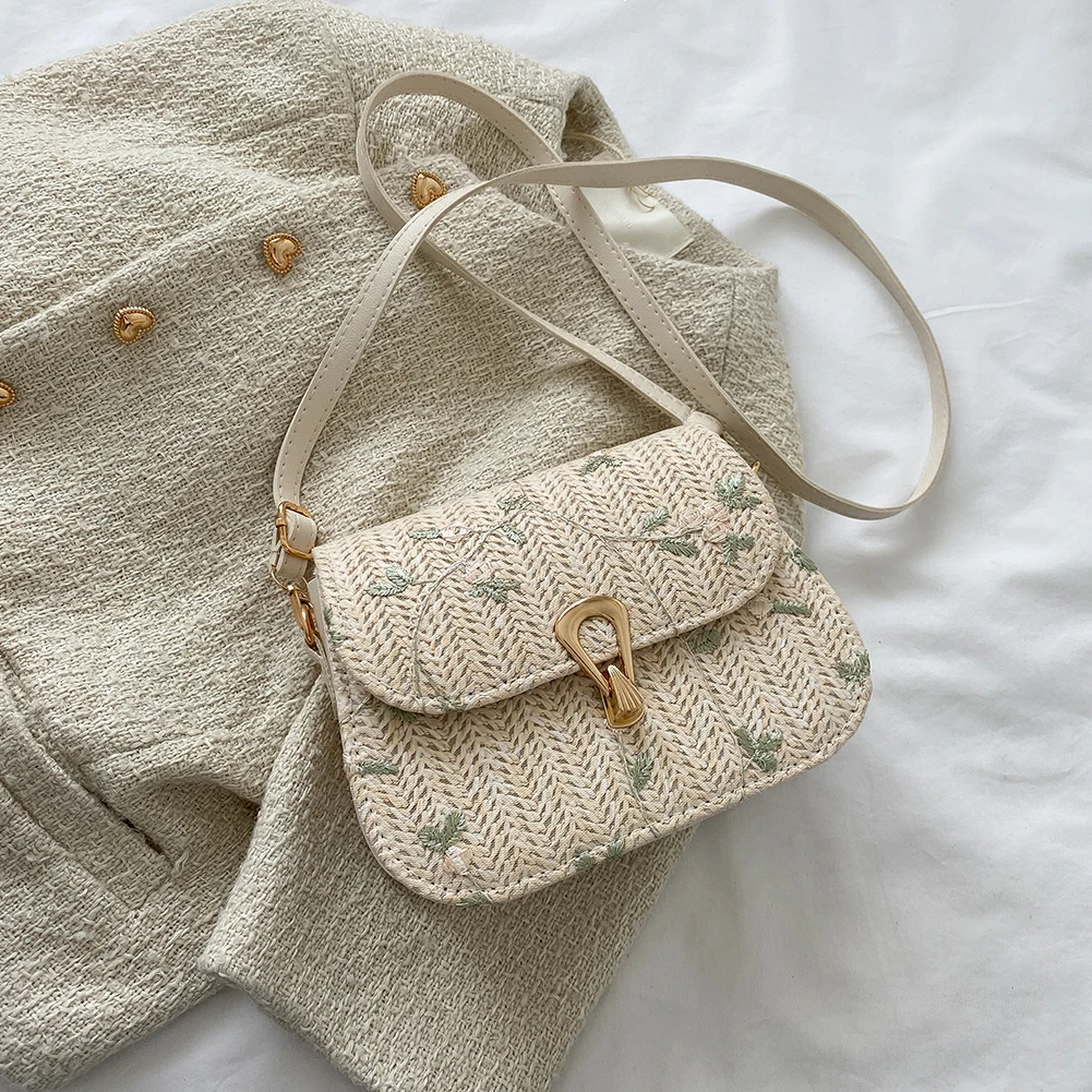 حقيبة كروس بودي مع حزام قابل للتعديل للنساء ، محفظة قش الزهور ، إغلاق غلق بمشبك ، حقيبة كروشيه هوبو ، حقيبة شاطئ صيفية للإناث