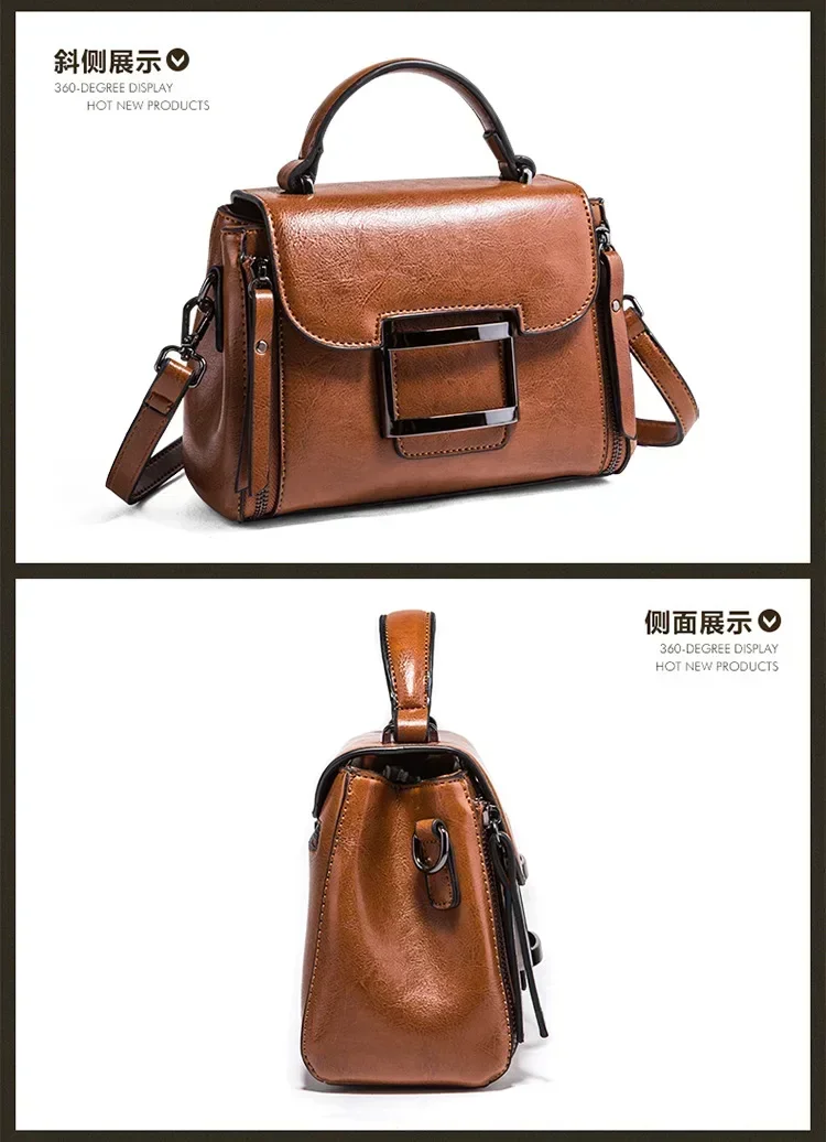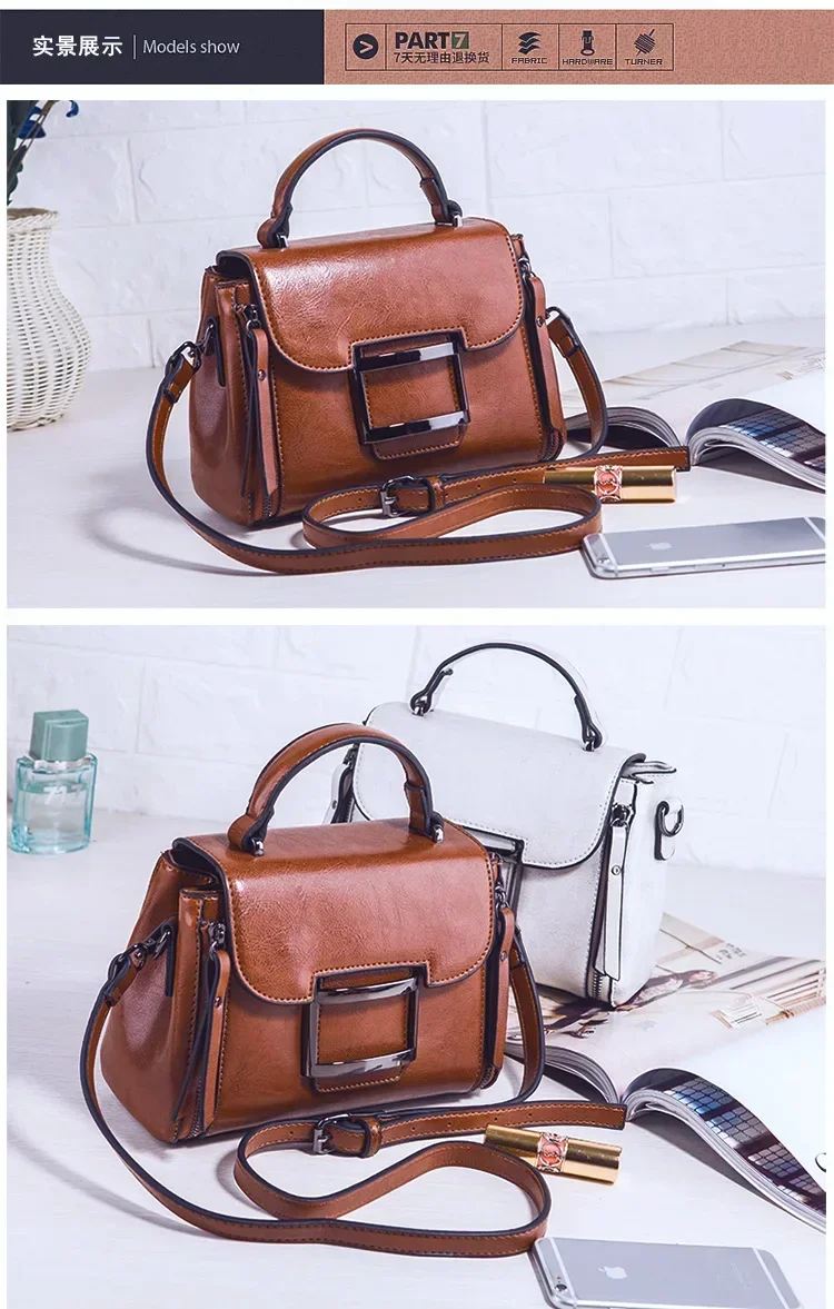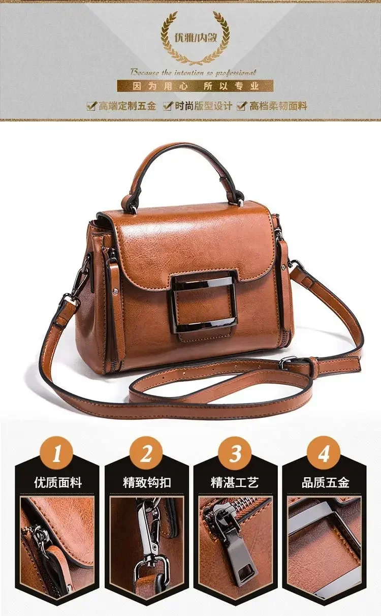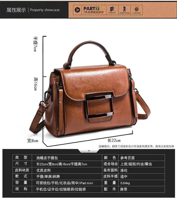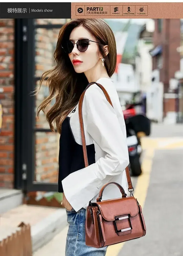 حقيبة كروس للنساء من الجلد الشمعي العتيق ، حقيبة يد بسيطة ، حقيبة كتف صغيرة مربعة الشكل ، النسخة الكورية ، جديدة ، الربيع والصيف