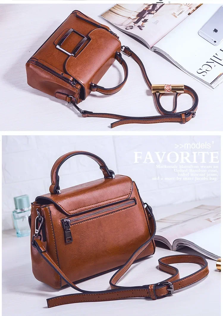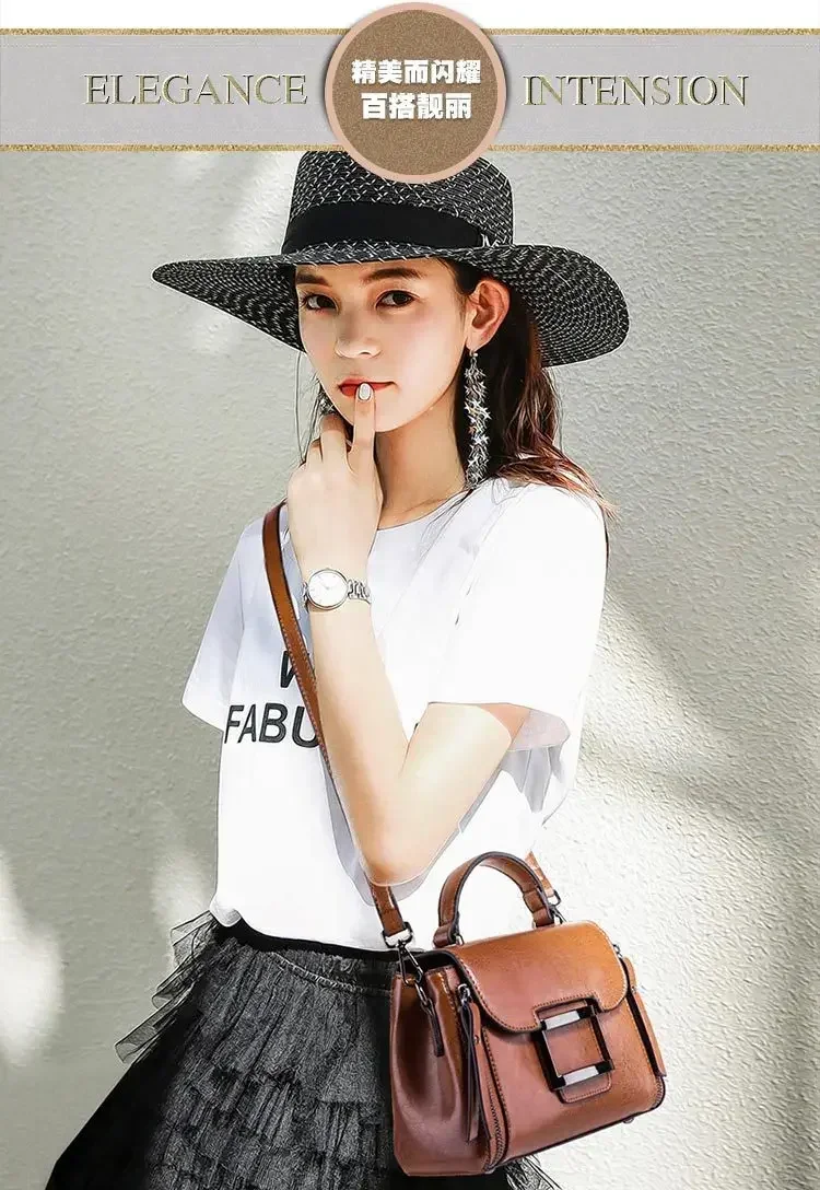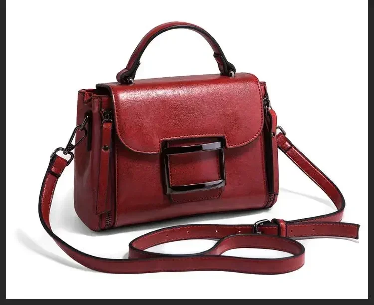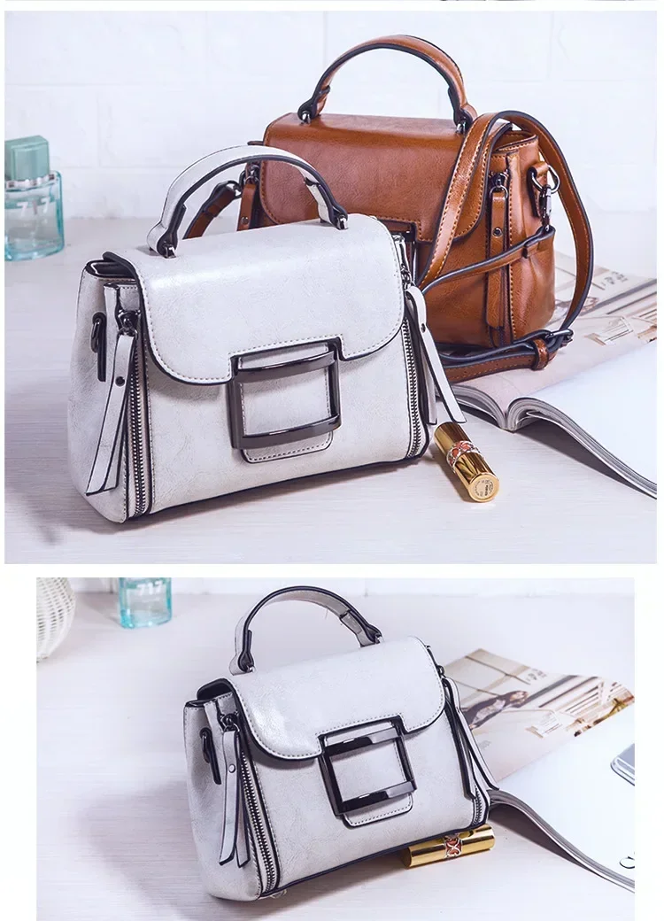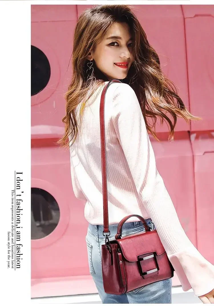 حقيبة كروس للنساء من الجلد الشمعي العتيق ، حقيبة يد بسيطة ، حقيبة كتف صغيرة مربعة الشكل ، النسخة الكورية ، جديدة ، الربيع والصيف