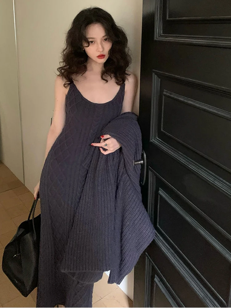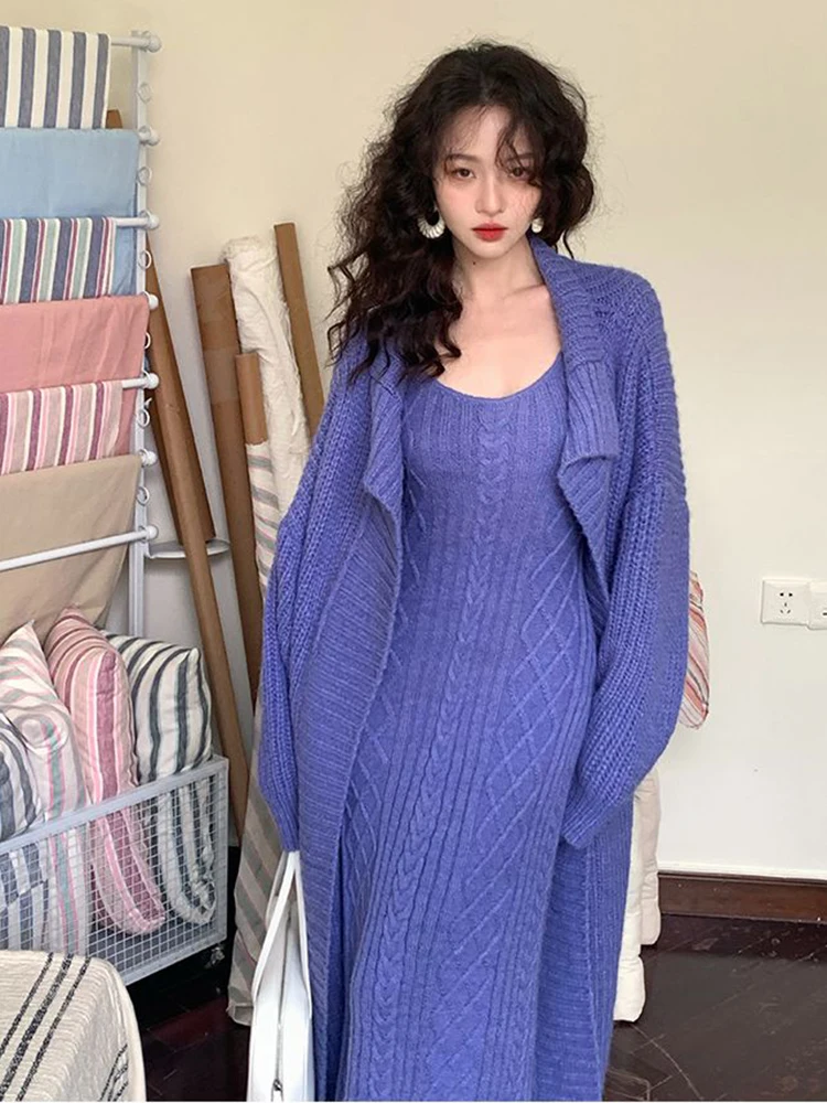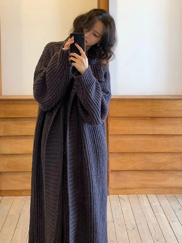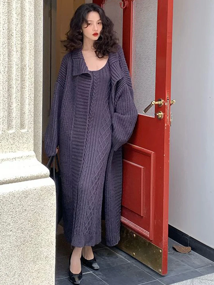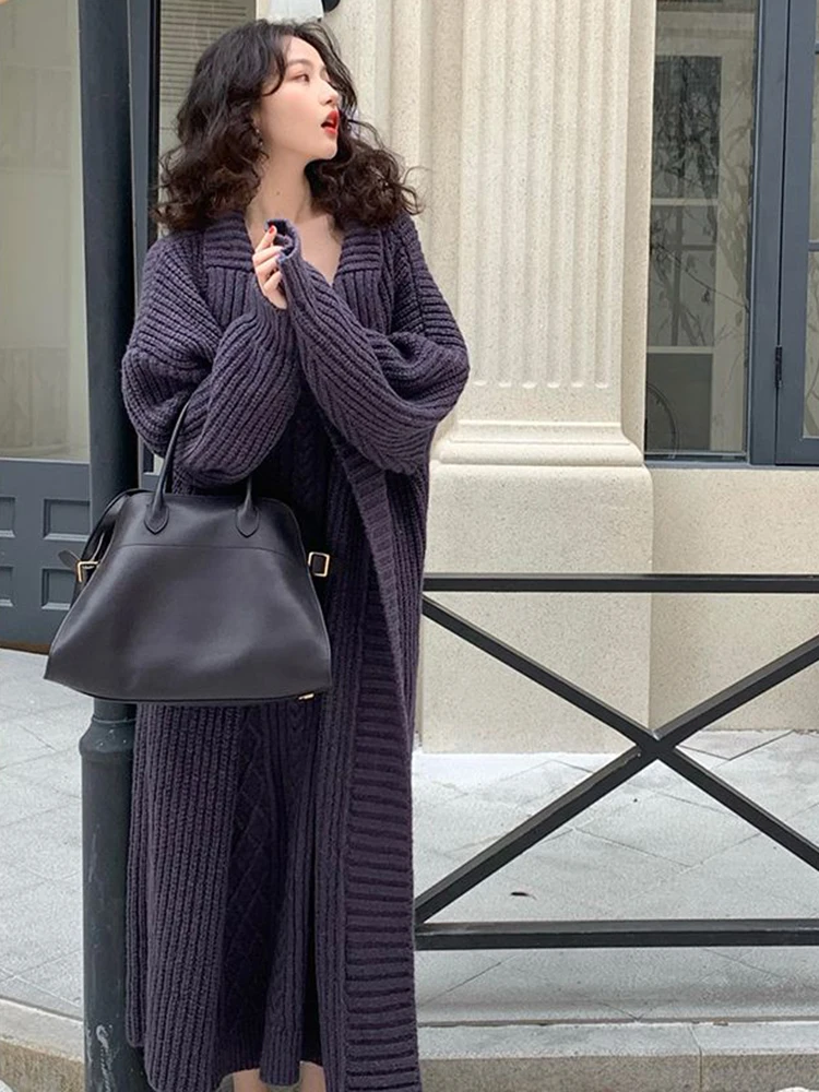 سترة كارديجان نسائية فضفاضة محبوكة ، فستان صدرية برقبة حرف V ، أحادية اللون ، على الطراز الكوري ، أسلوب أنيق ، الخريف ، الشتاء ، مجموعتان ،