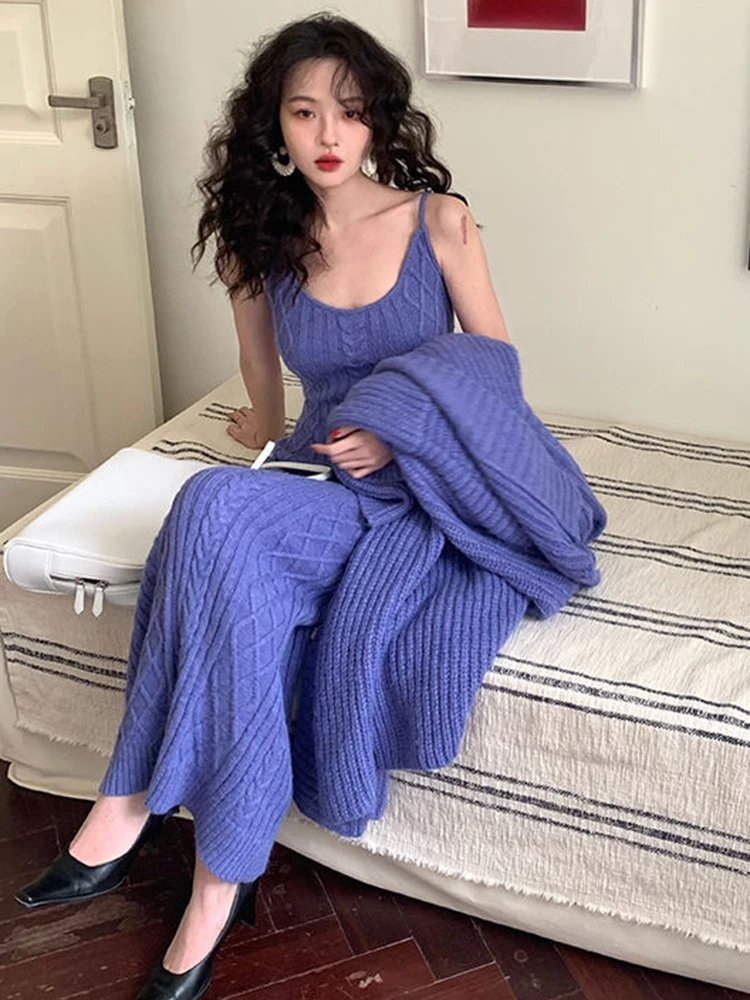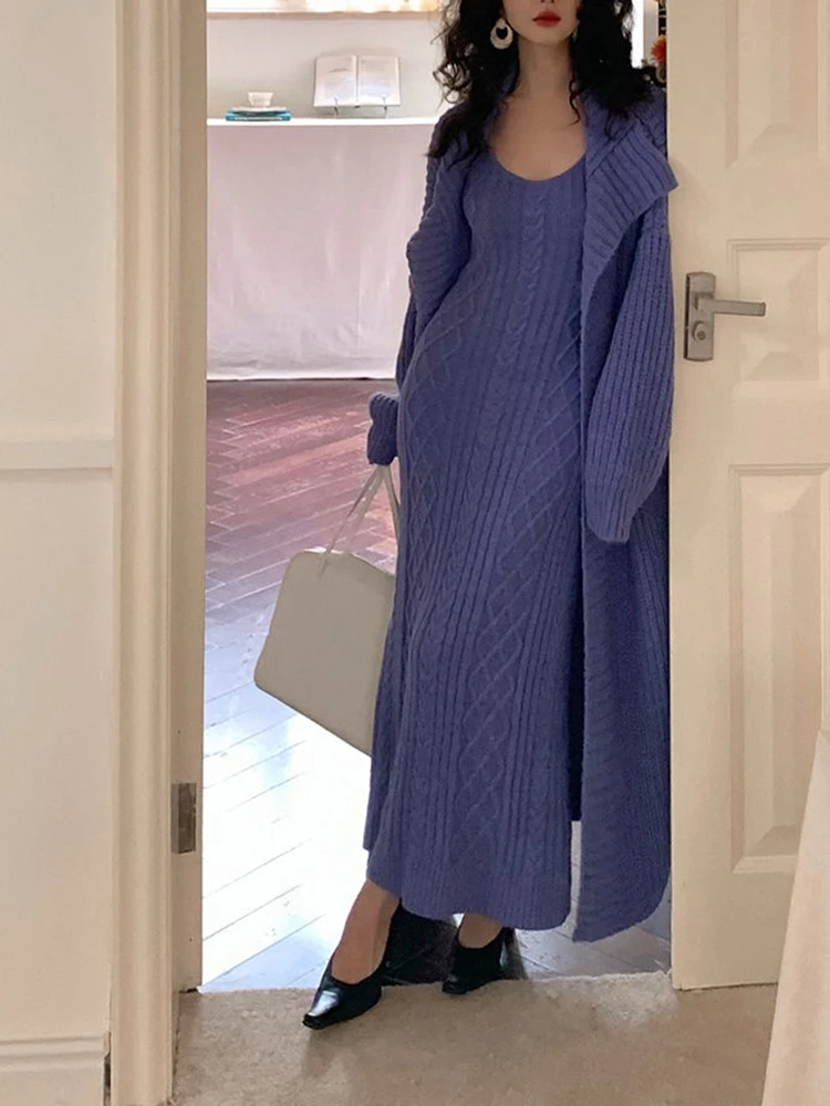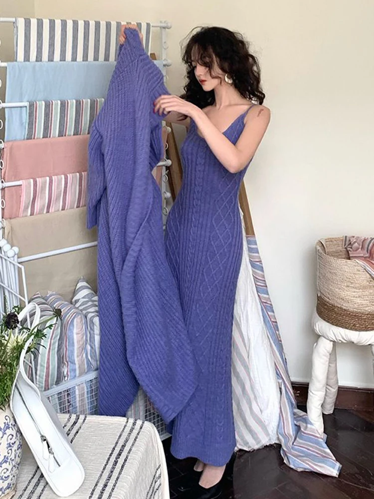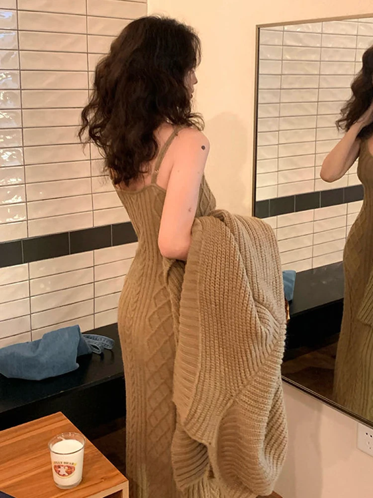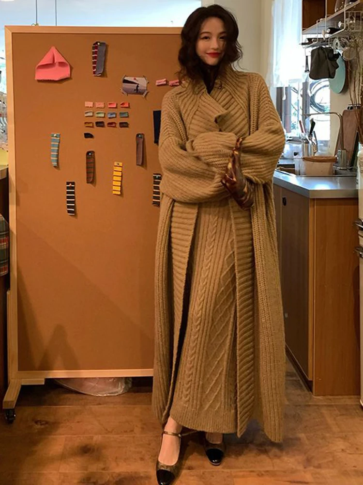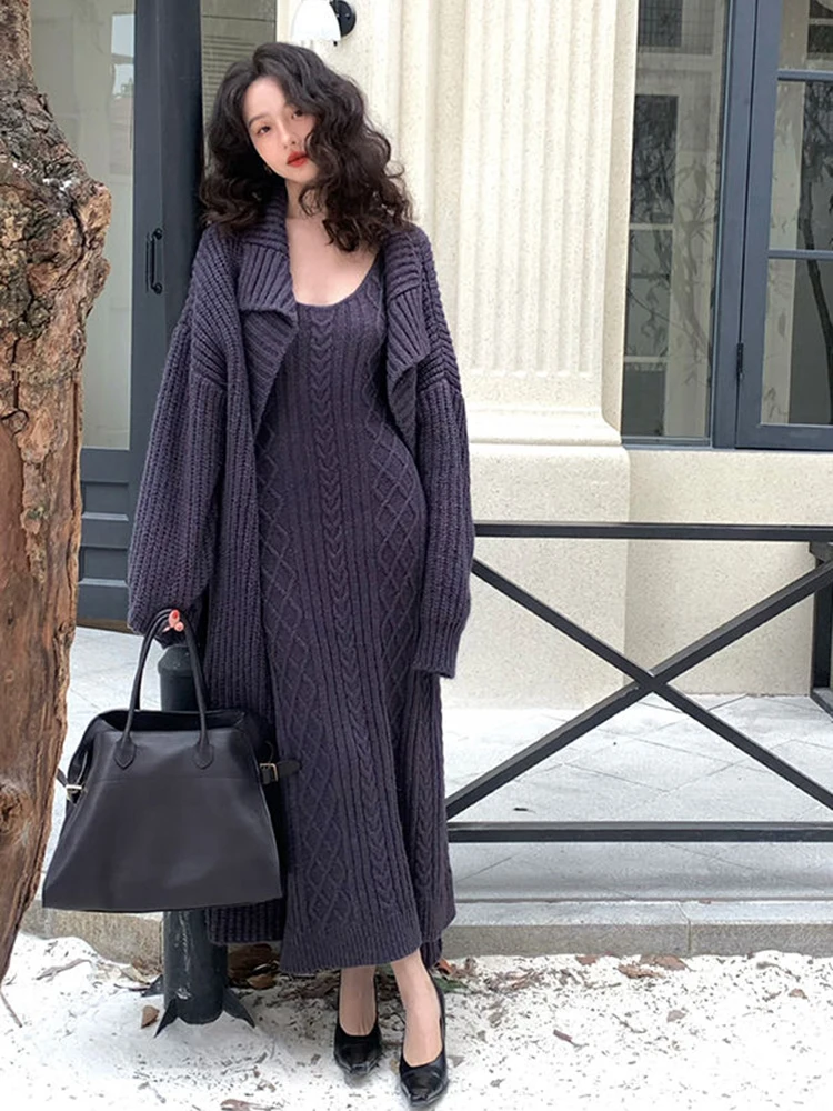 سترة كارديجان نسائية فضفاضة محبوكة ، فستان صدرية برقبة حرف V ، أحادية اللون ، على الطراز الكوري ، أسلوب أنيق ، الخريف ، الشتاء ، مجموعتان ،