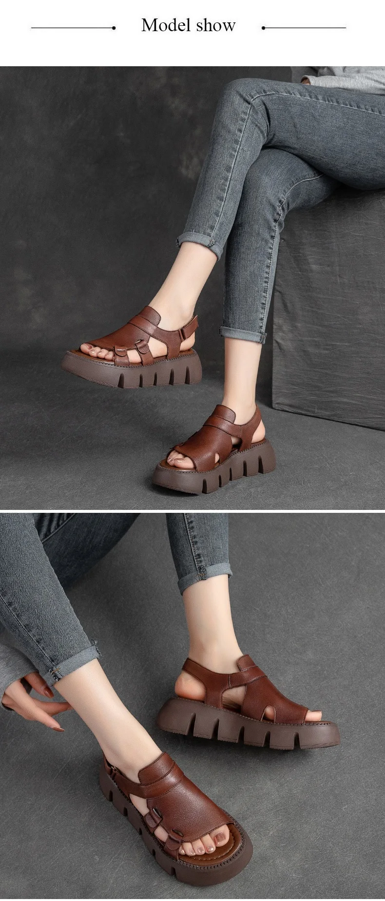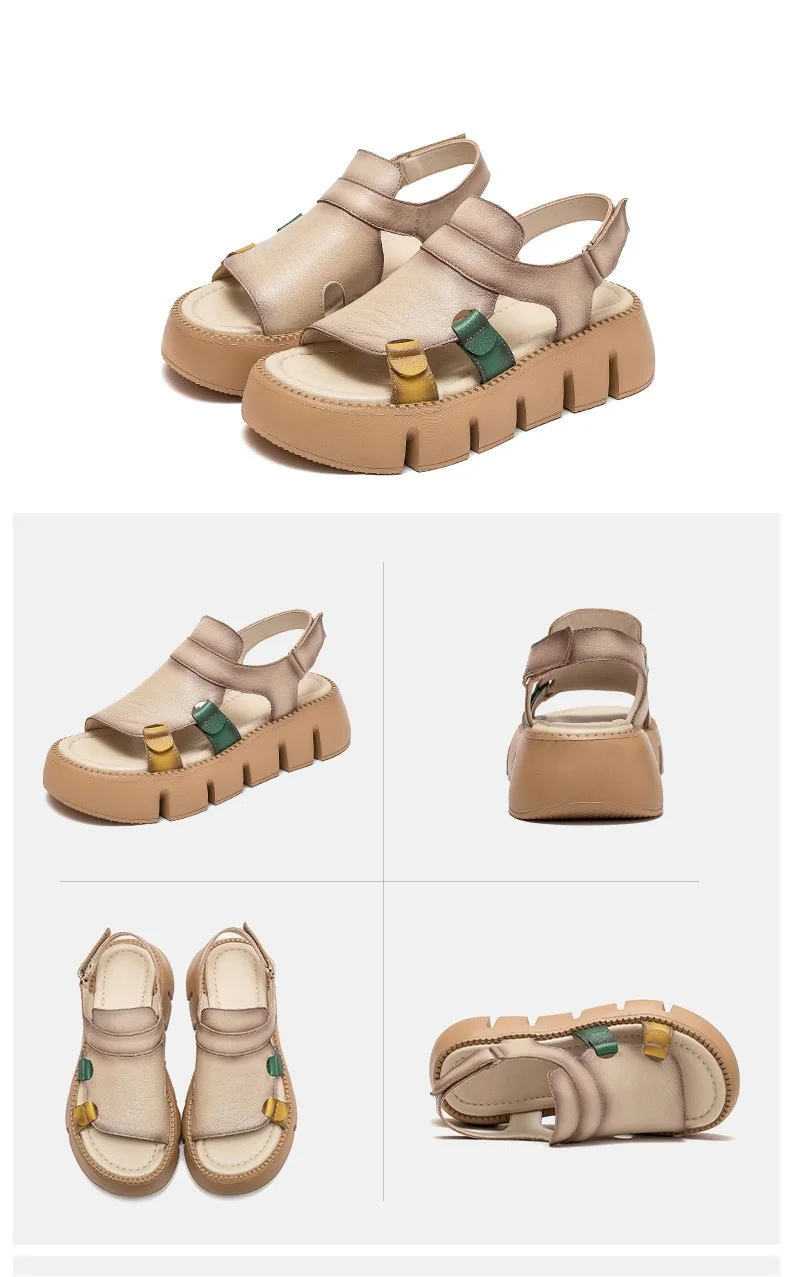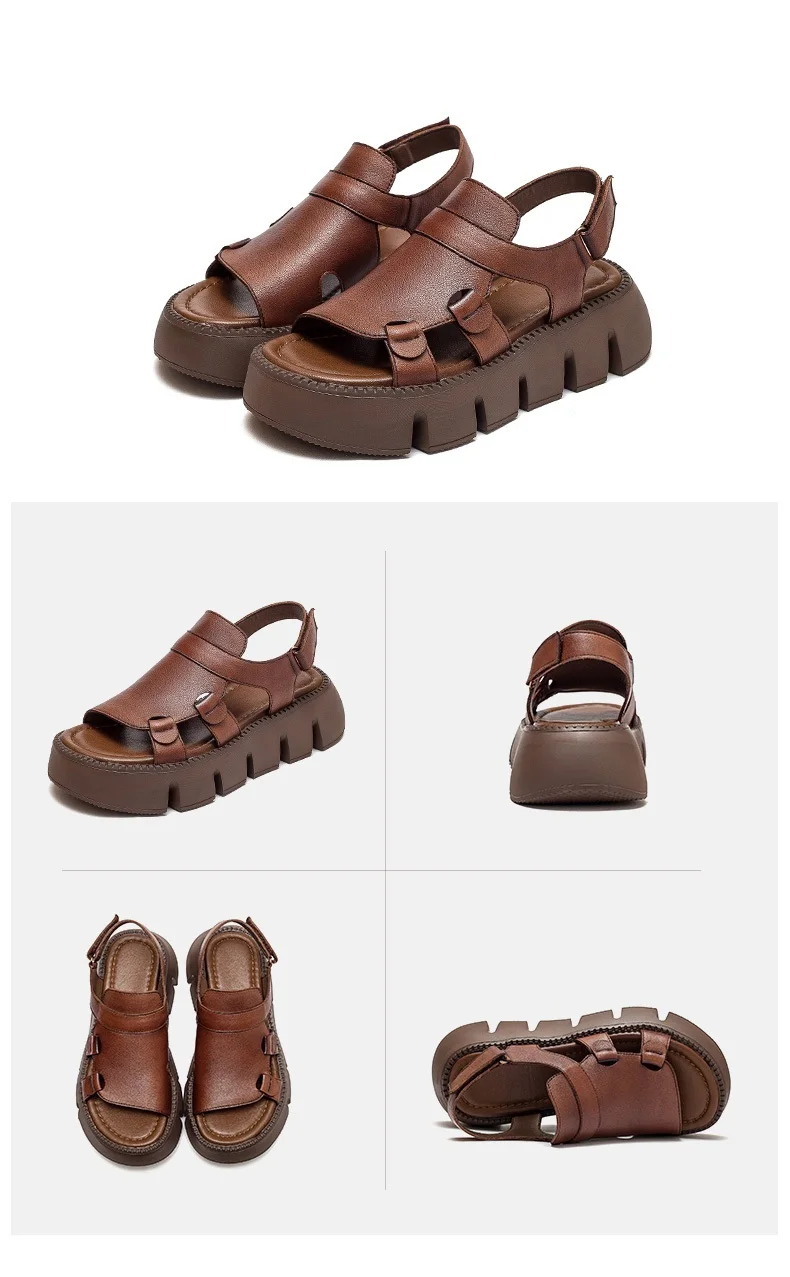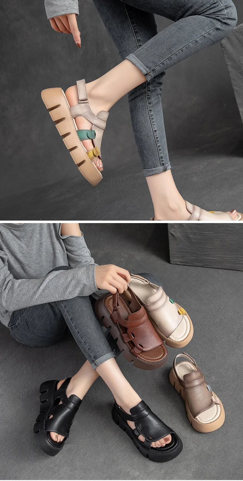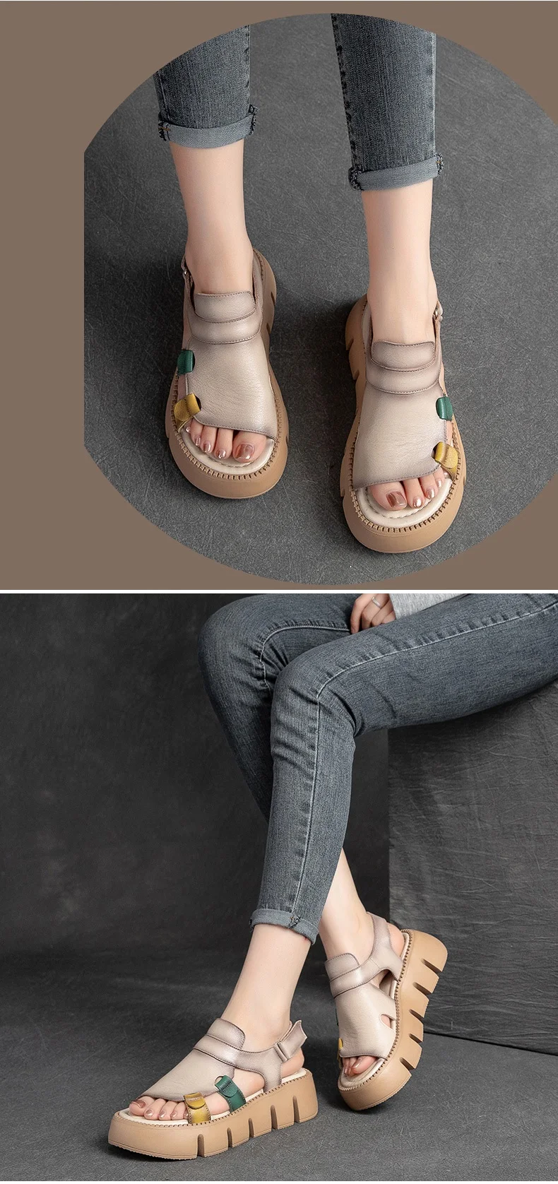 صنادل جلدية أصلية مصنوعة يدويًا للنساء من Drkanol ، صنادل مصممة فاخرة ، خطاف وحلقة ، منصة ، كاجوال ، أحذية صيفية ، *