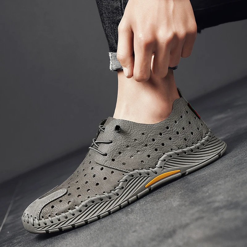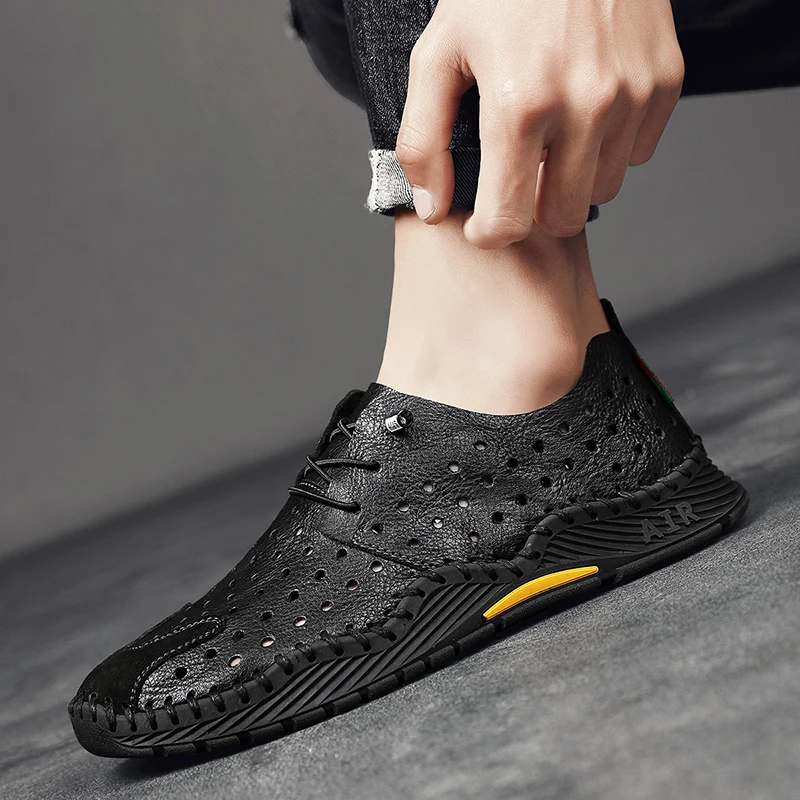 عالية الجودة جلد أحذية رجالي عادية الجوف خارج تنفس المشي أحذية رياضية للرجال الصيف اليدوية المتسكعون أحذية قيادة لينة