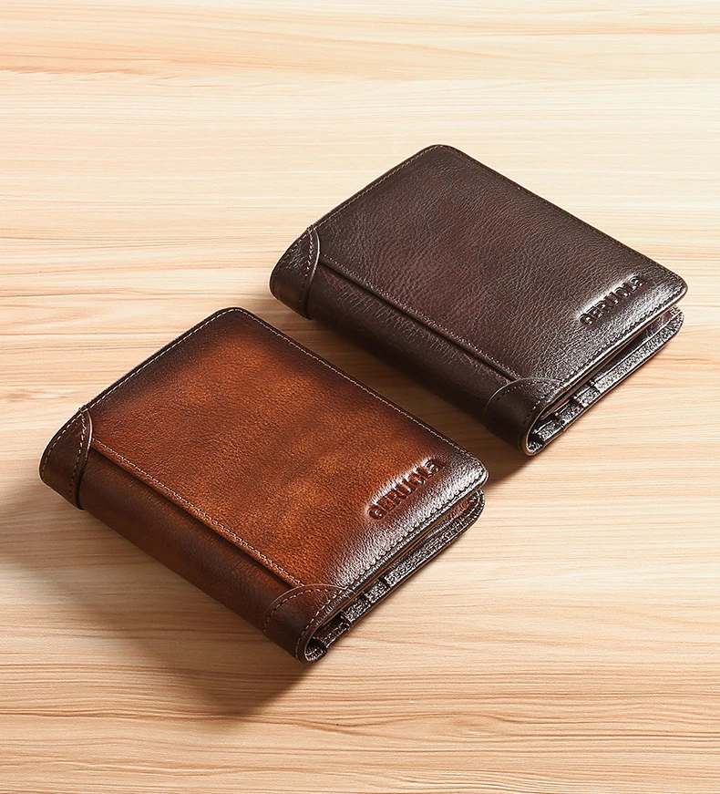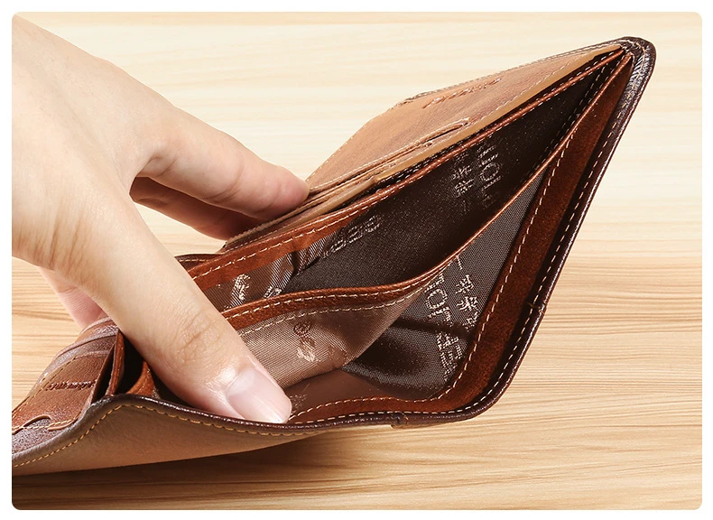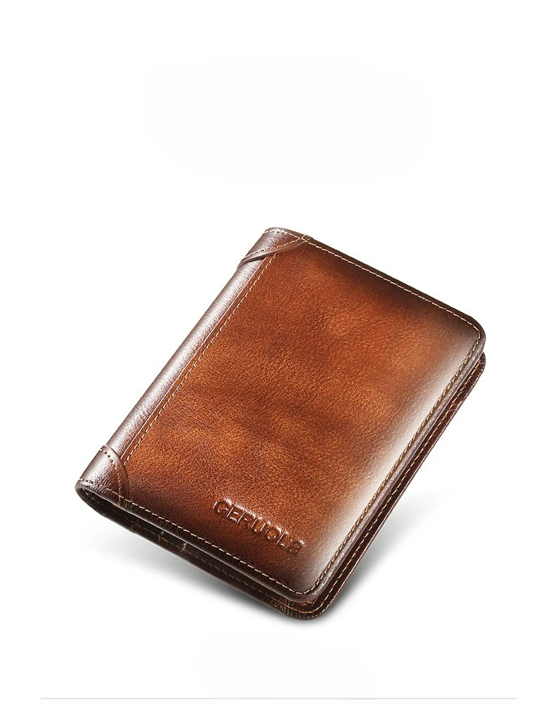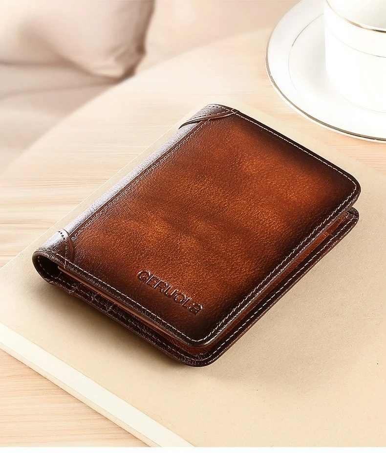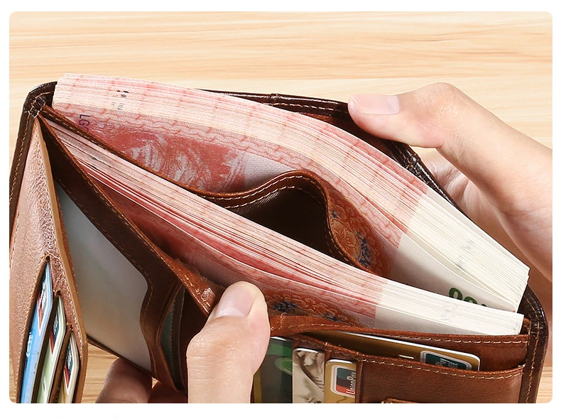 محافظ جلد طبيعي لمنع تحديد الهوية بموجات الراديو للرجال ، ثلاثية الطيات ، عتيقة ، قصيرة ، متعددة الوظائف ، حامل بطاقات الائتمان ، مشابك نقود ، بنية