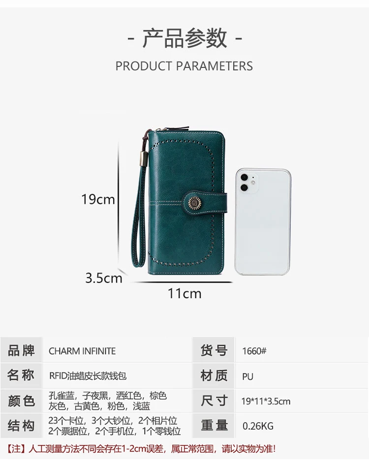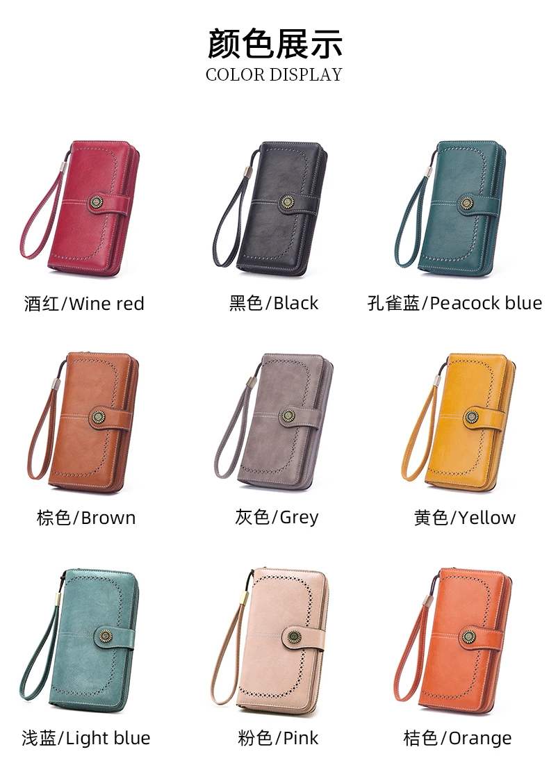 محفظة جلدية مضادة للسرقة للنساء ، حقيبة مخلب ، حامل بطاقة ، سحاب طويل ، كبير ، السيدات ، محفظة الإناث ، عالية الجودة