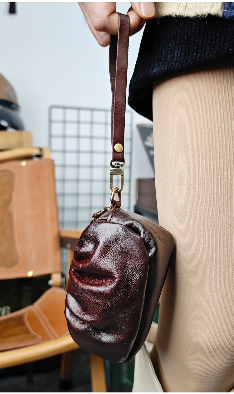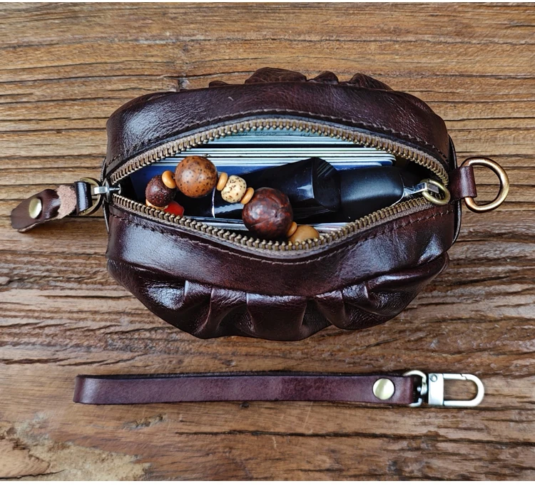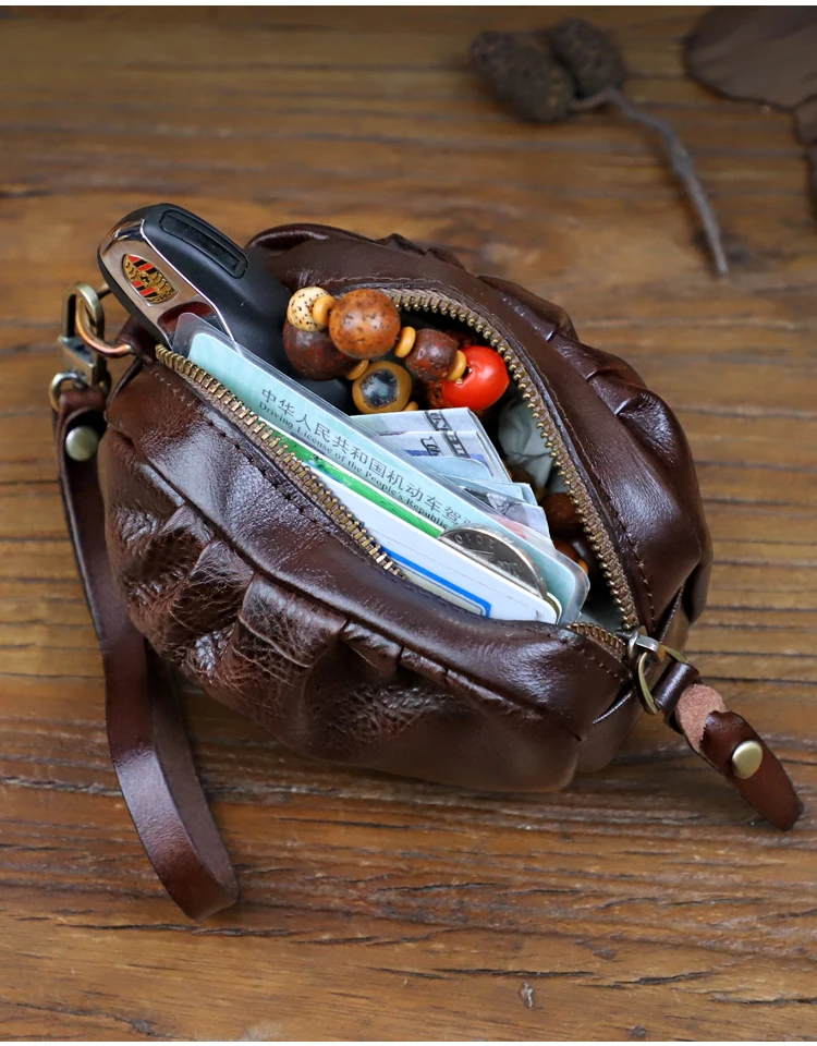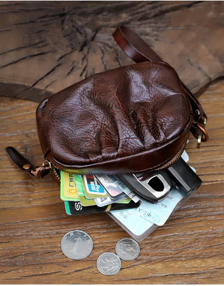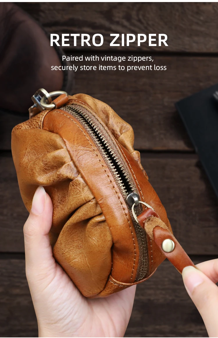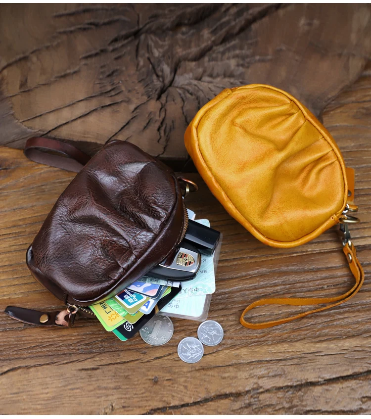 محفظة عملات معدنية من الجلد الطبيعي للرجال والنساء ، جيب لتخزين الأموال ، محفظة مصنوعة يدويًا عتيقة ، حقيبة حمل البطاقات