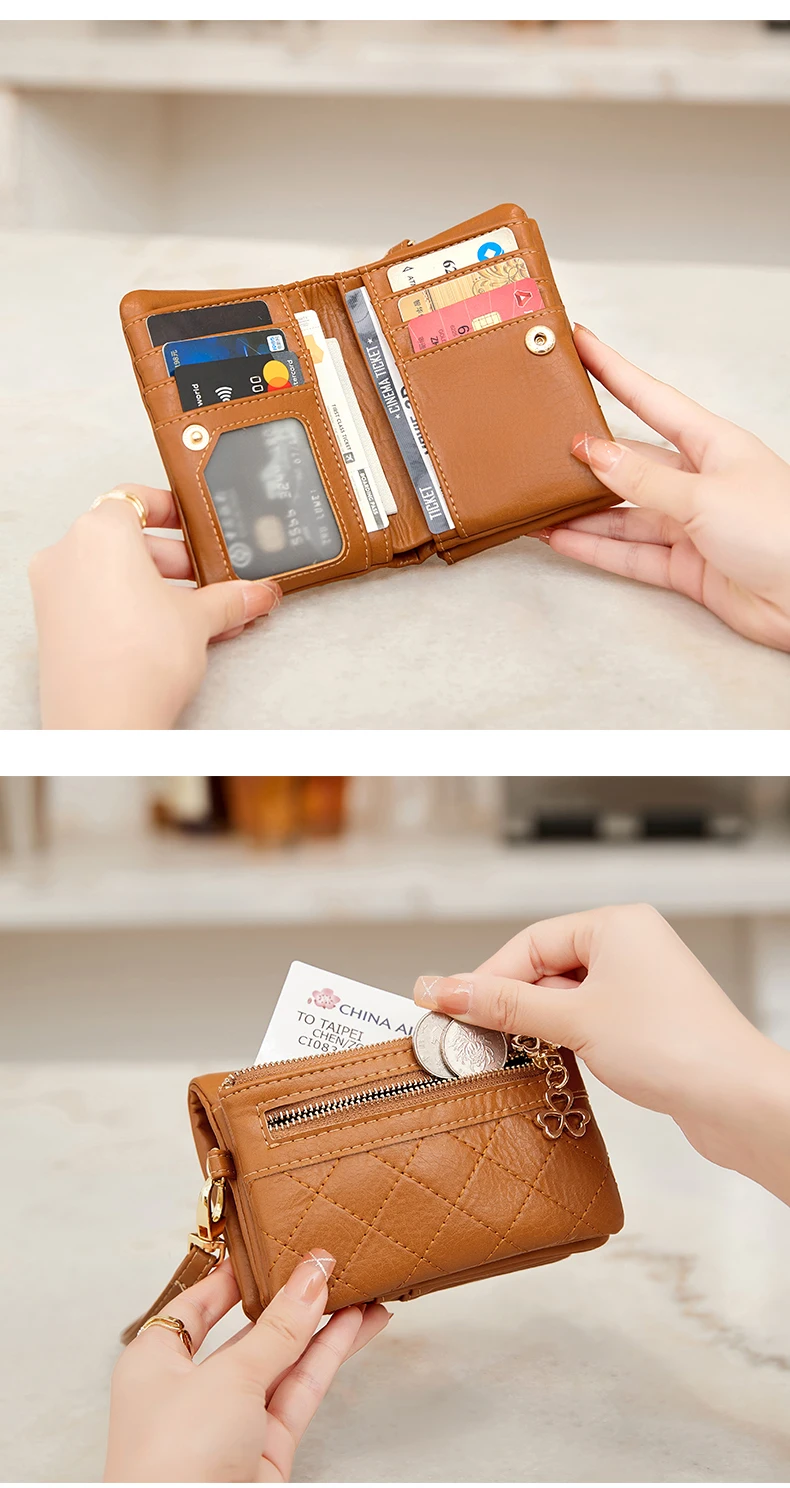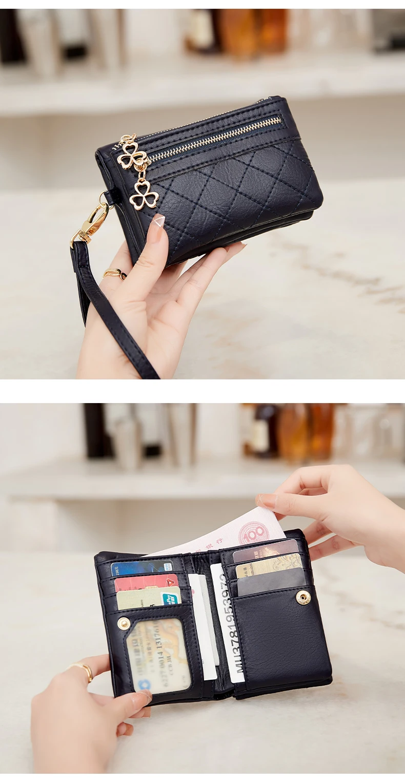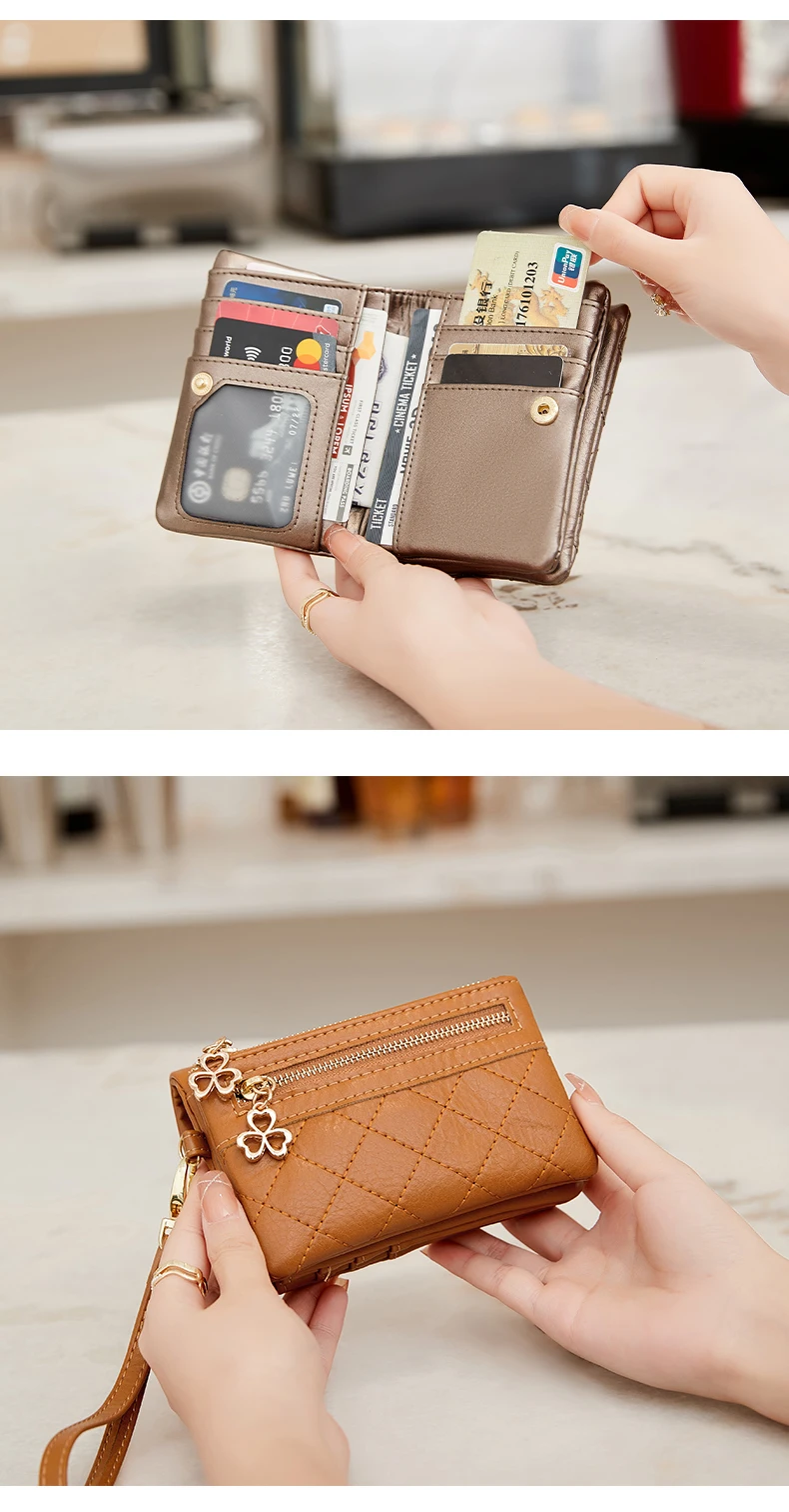 محفظة قصيرة Bifold خمر للنساء ، محفظة عملة مخلب ، محفظة بلون مع معصمه