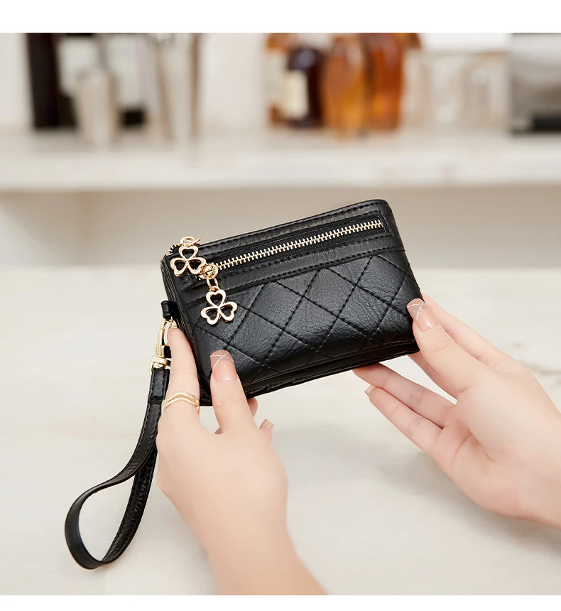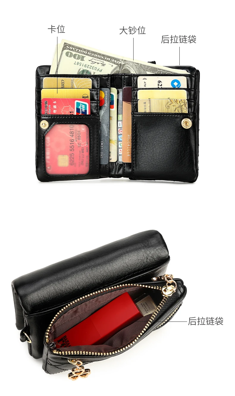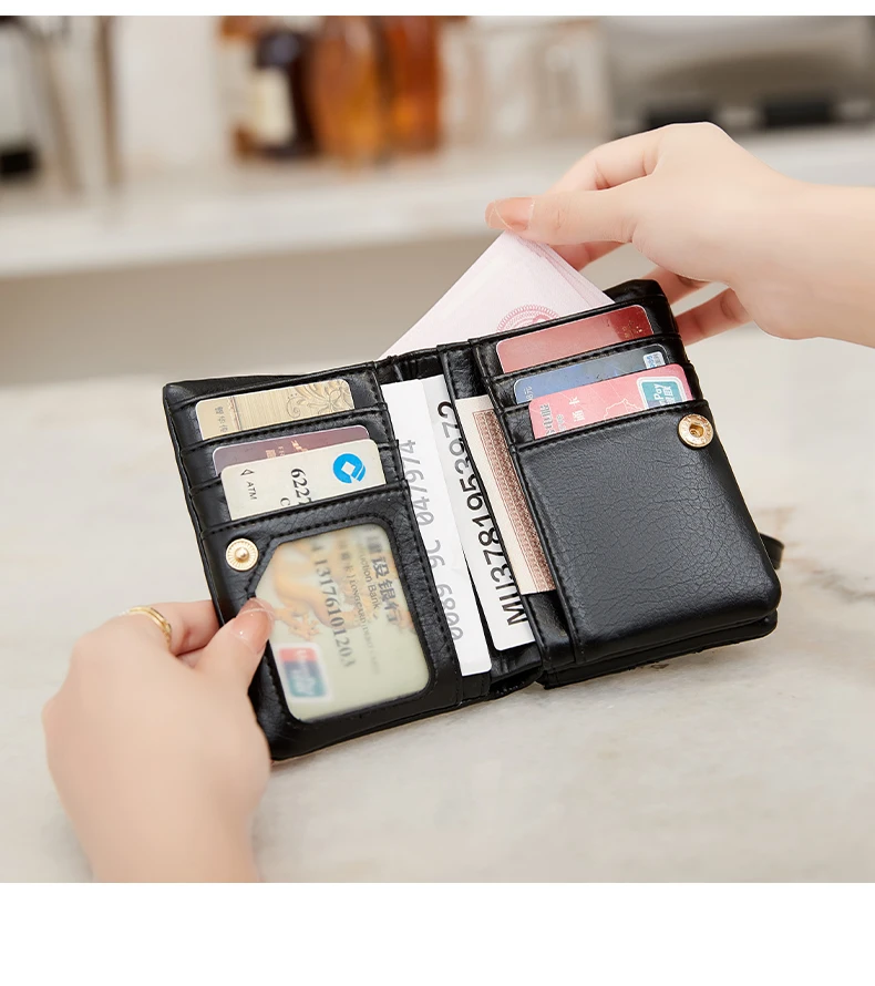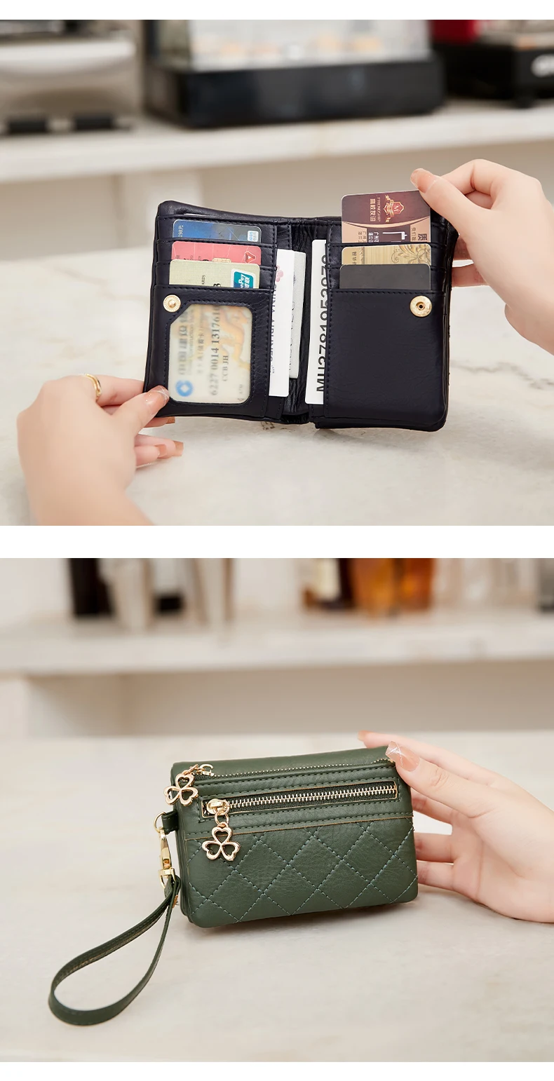 محفظة قصيرة Bifold خمر للنساء ، محفظة عملة مخلب ، محفظة بلون مع معصمه