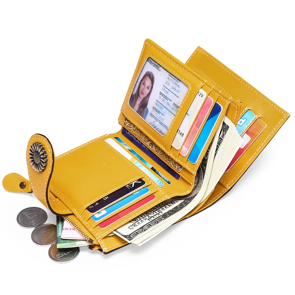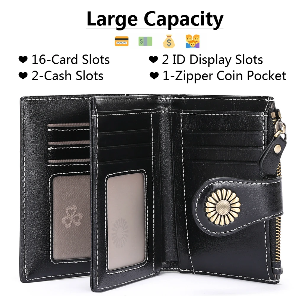 محفظة نسائية صغيرة من sendevn محفظة جلدية فاخرة مزودة بجيب للبطاقات مزود بسحّاب للبطاقات وسحّاب للبطاقات مزود بـ 16 فتحة للبطاقات طراز قصير 5215