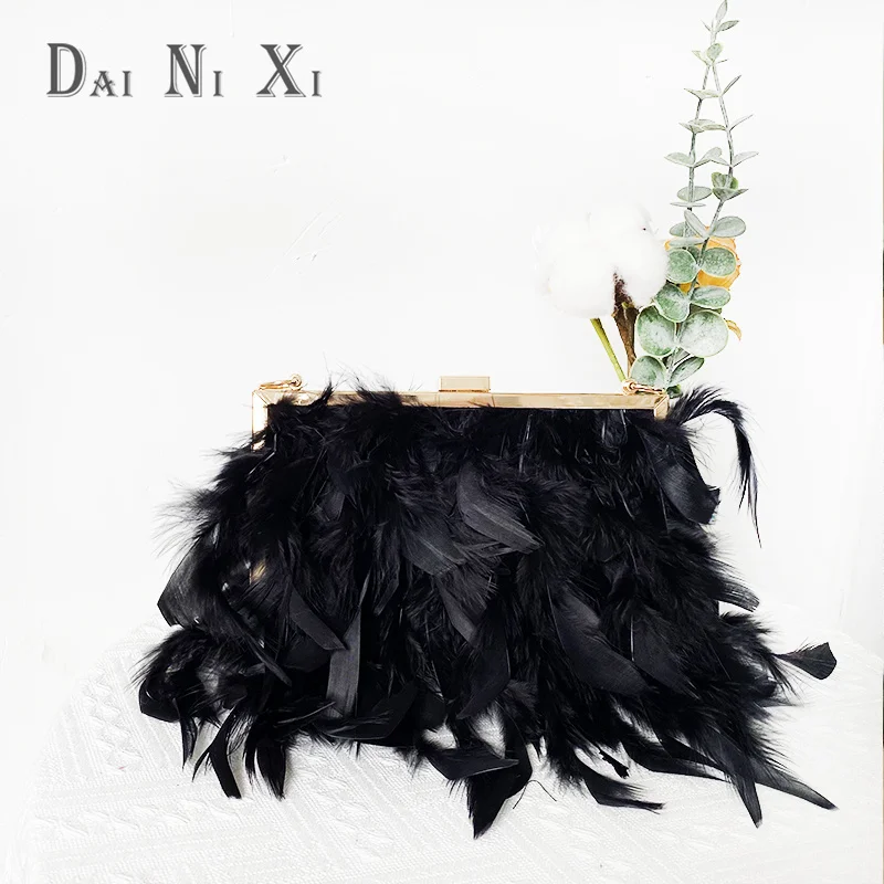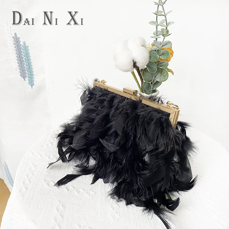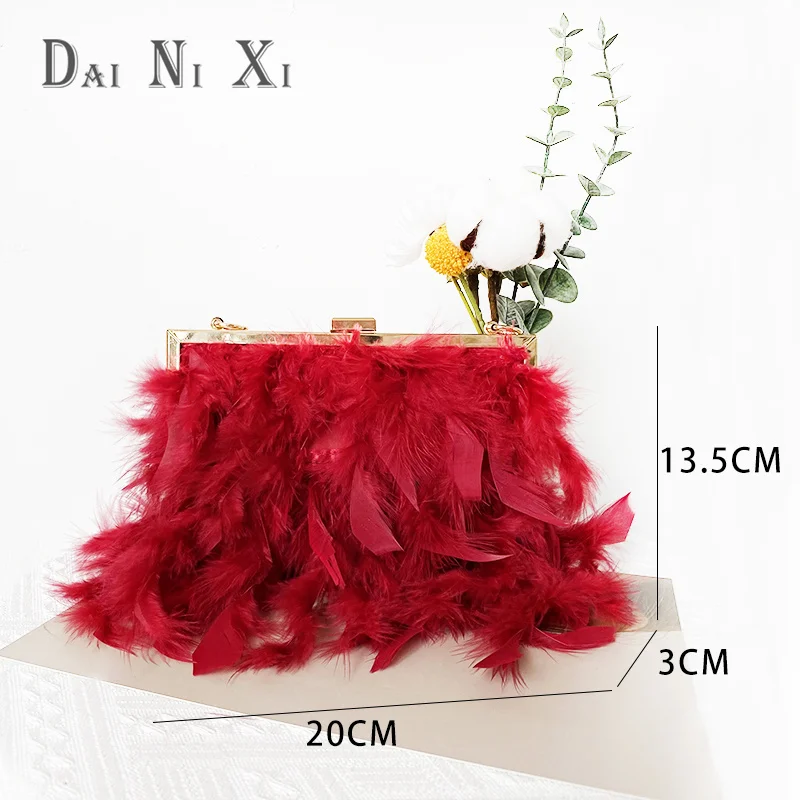 موضة حمل حقيبة الفراء النعامة ريشة مخلب اللؤلؤ حقيبة يد حفل زفاف فستان رسمي محفظة للسيدات