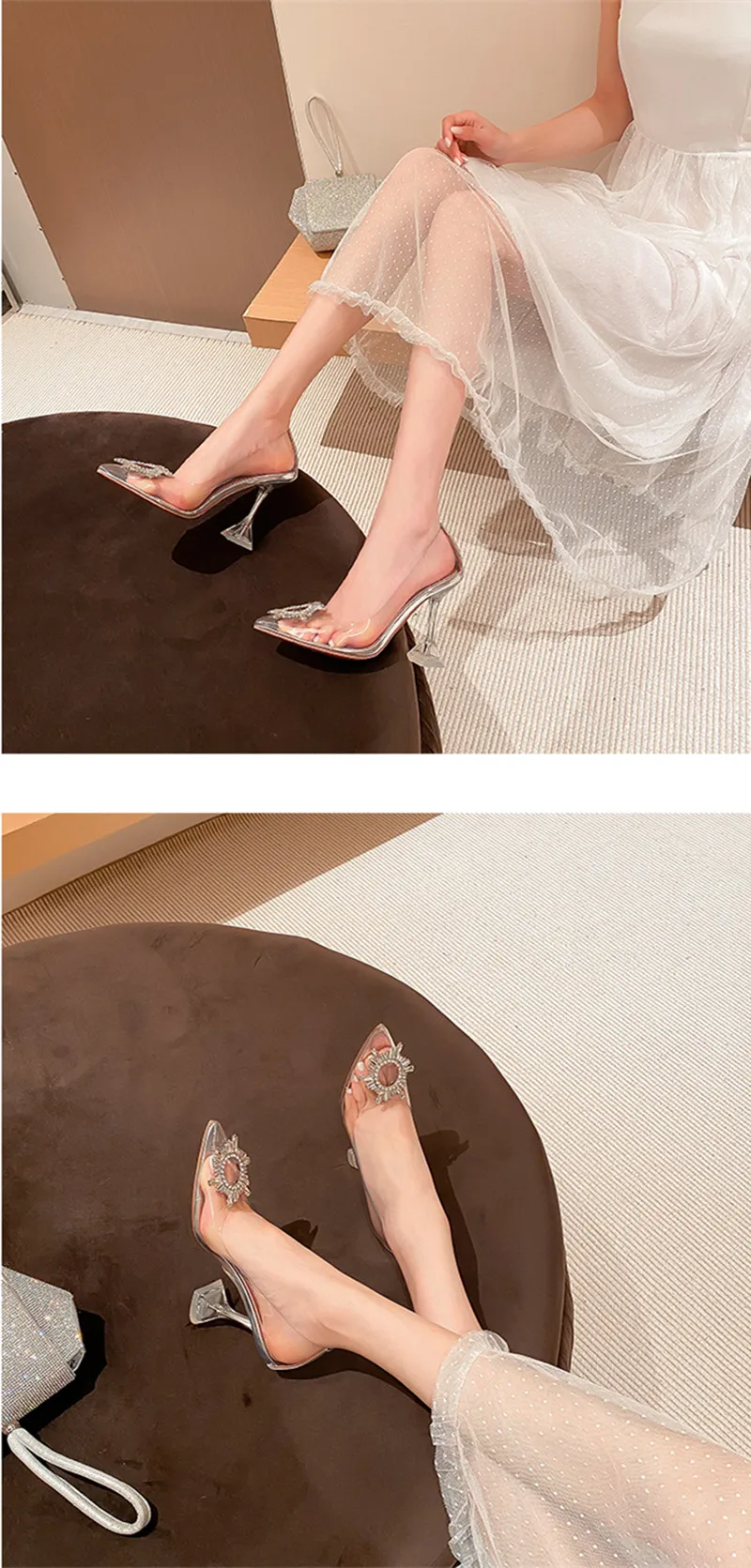 2023 ستار ستايل كريستال شفاف بولي كلوريد الفينيل النساء مضخات فاخرة الراين عالية الكعب الزفاف أحذية الزفاف الصيف أحذية حفلة موسيقية