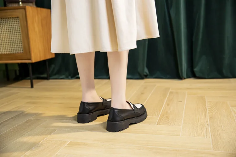 AIYUQI السيدات المتسكعون جلد طبيعي النمط البريطاني منصة أحذية نسائية كبيرة الحجم موضة أحذية الفتيات الربيع