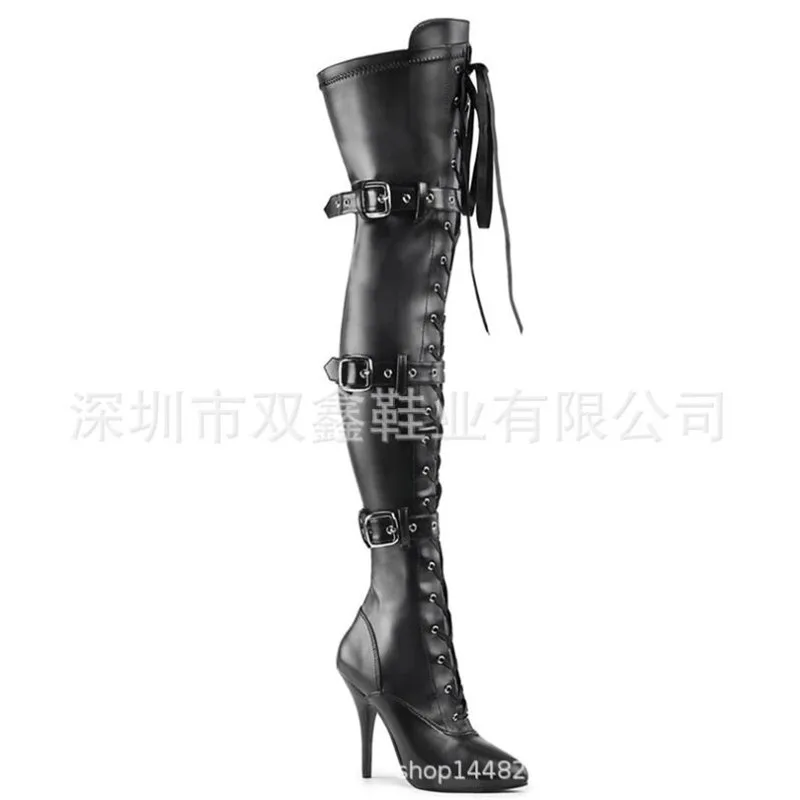 Eilyken-حذاء نسائي كعب من الجلد يصل لفوق الركبة بالسستة
