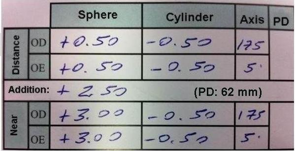 3). الاستجماتيزم: إذا كانت عينك ذات استجماتيزم ، يرجى توفير قوة الاستجماتيزم والمحور.