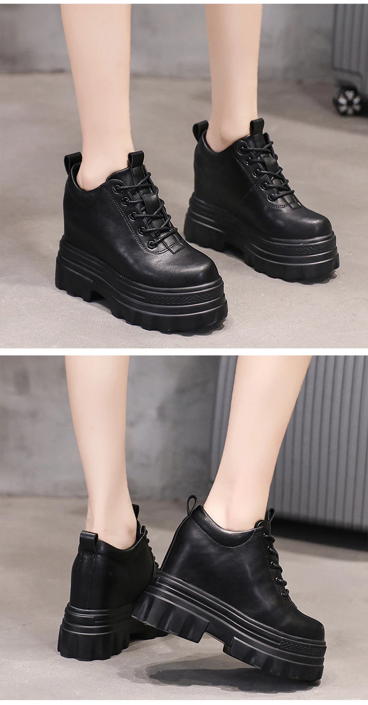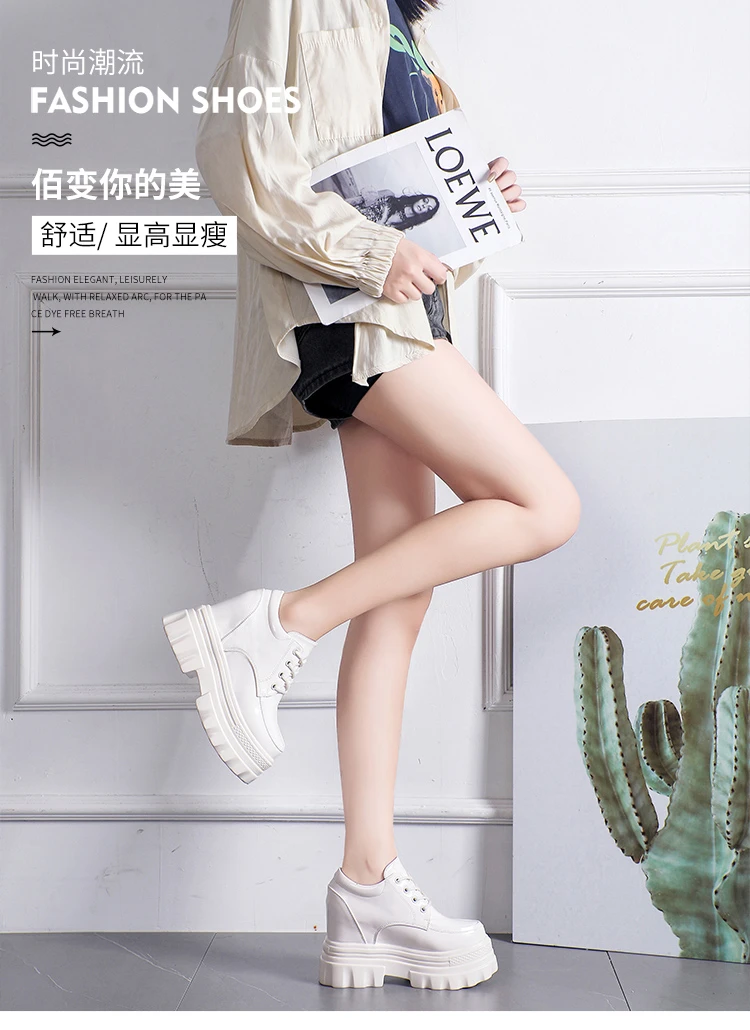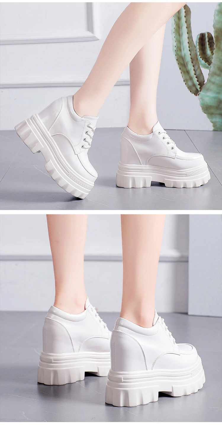 Harajuku النساء أسافين أحذية رياضية للمرأة زيادة 11 سنتيمتر أبي مكتنزة أحذية رياضية السيدات تنفس منصة جلد حذاء كاجوال
