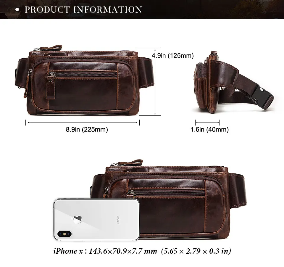 HUMERPAUL موضة الخصر حزم الرجال جلد طبيعي المنظم السفر الصدر حقيبة ضرورة الخصر حزام الهاتف المحمول بوم حقيبة صغيرة