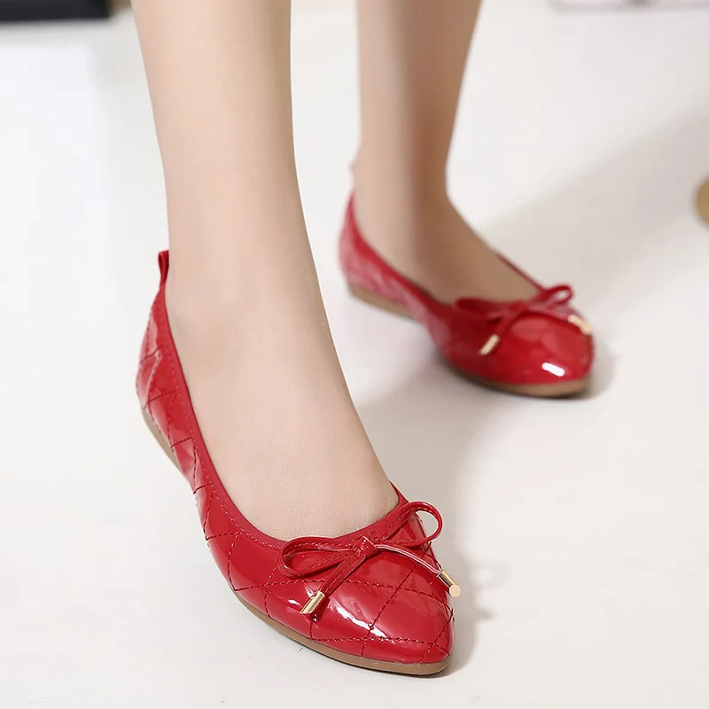 UMMEWALO لينة باتن جلد حذاء مسطح المرأة عادية أشار تو حذاء راقصة البالية السيدات القوس مصمم المطاط وحيد حذاء كاجوال